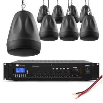 4 strefowy zestaw białych głośników tubowych 8 x 6.5" PSP6 100V z wzmacniaczemKod: 952.212 set5