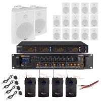 Zestaw białych głośników naściennych 4 x 3" BC30V z wzmacniaczem oraz mikrofonem biurkowym