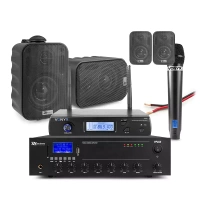 Zestaw czarnych głośników naściennych 4 x 3" BC30V z wzmacniaczem oraz mikrofonem bezprzewodowymKod: 952.100 set7