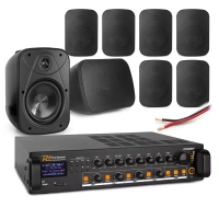 Zestaw czarnych głośników naściennych 8 x 6.5" BC65V z wzmacniaczem wielostrefowym oraz bezprzewodowym zestawem mikrofonowymKod: 952.112 set3