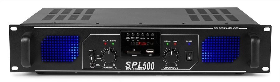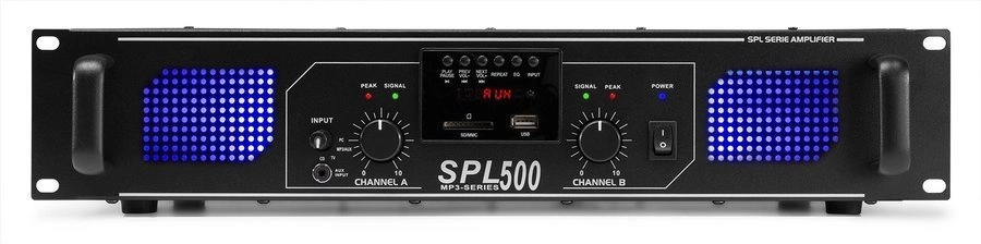 Profesjonalny wzmacniacz SPL500MP3 firmy Skytec ma doskonałą jakość dźwięku! Jest idealny dla DJ-ów lub w instalacjach HIFI. Bardzo mobilny, będzie szczególnie doceniany na małych koncertach, pokazach i innych wydarzeniach, dzięki mocowaniu do szafy 19”. Jest również szeroko stosowany w instalacjach kina domowego, aby cieszyć się dźwiękiem wysokiej jakości.