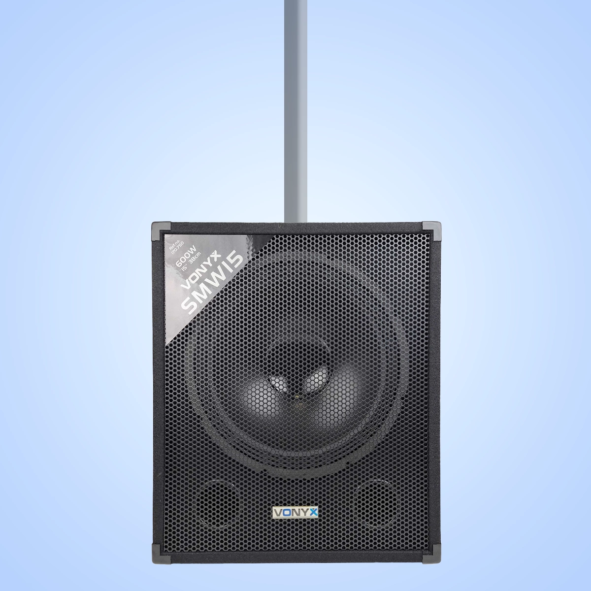 Profesjonalny subwoofer o mocy 600W i mocy 300W RMS, Vonyx SMW15. Subwoofer pasywny ma wbudowany filtr dolnoprzepustowy, który zapewnia głęboki i mocny dźwięk basowy. Wyposażony jest w 15” subwoofer, czyli o średnicy 38cm.