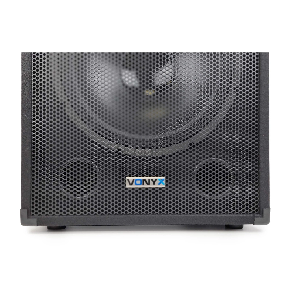 Subwoofer Vonyx SMW15 Professional posiada zagłębione uchwyty po obu stronach urządzenia, które pozwolą na zabranie go na wszystkie imprezy. Wyposażony jest również w ochronne metalowe narożniki, filc amortyzujący i solidną kratkę, aby uniknąć niedogodności podczas transportu.