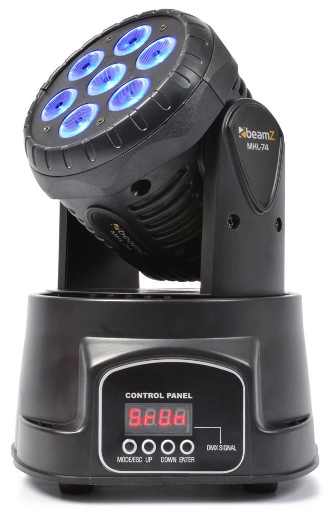 Ta mini ruchoma głowa BeamZ MHL74 to mała i kompaktowa ruchoma głowa LED o niespotykanych dotąd możliwościach. MHL74 ma 7 diod LED RGBW o mocy 10 W każda, 12 kanałów DMX oraz różne funkcje i efekty. Duża wydajność za niewielką cenę.