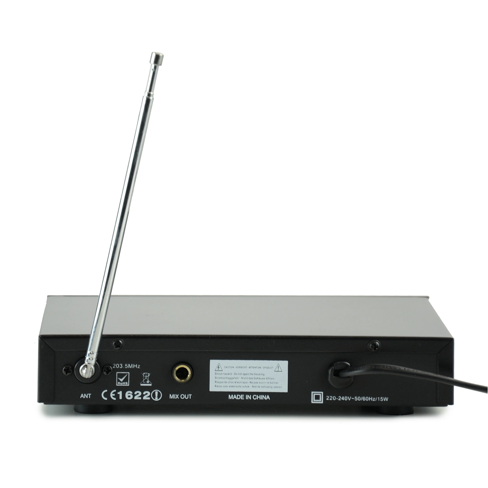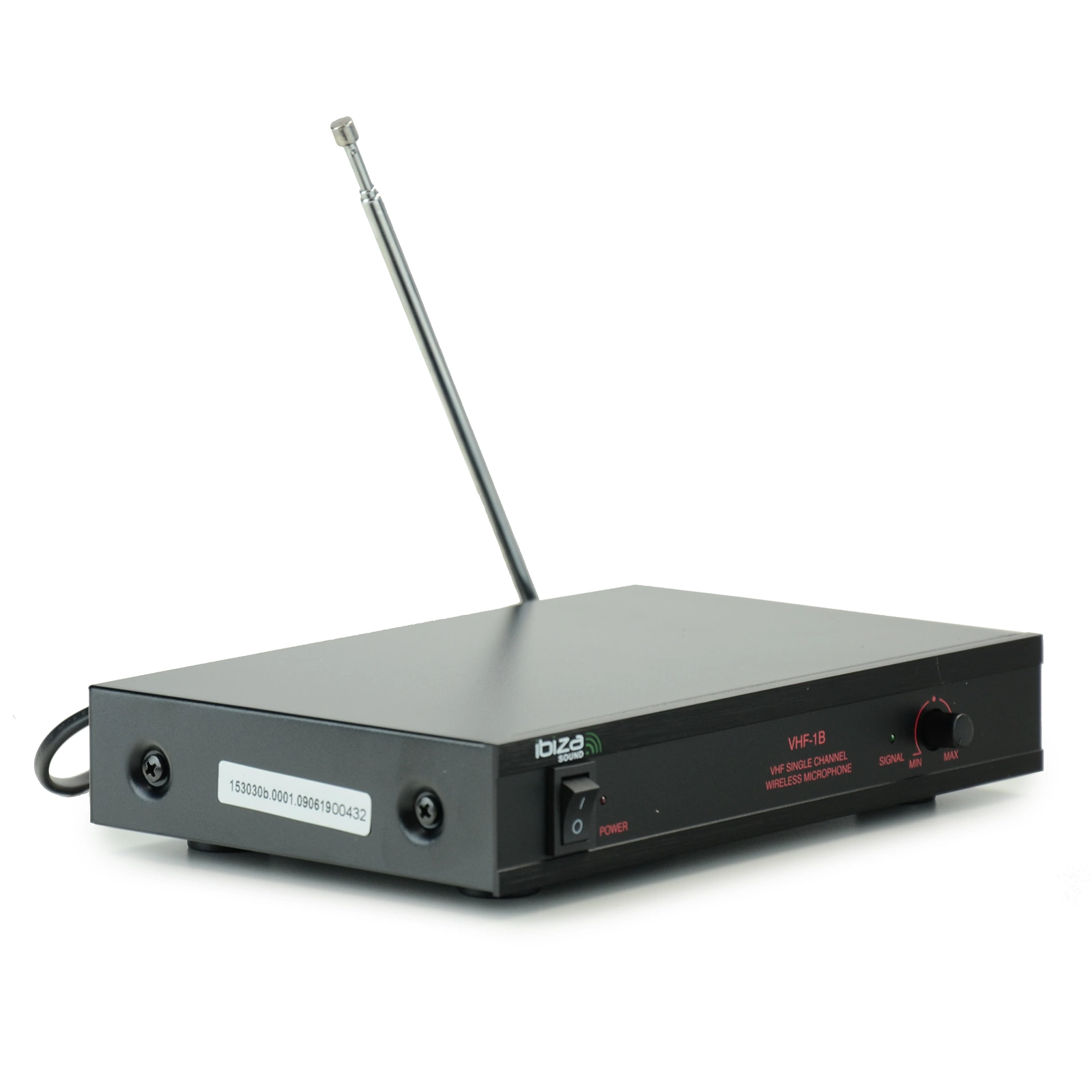 VHF1B marki Ibiza to bezprzewodowy system mikrofonowy VHF złożony z mikrofonu dynamicznego z nadajnikiem oraz stacji odbiorczej wyposażonej w antenę. Jednokanałowy zestaw bezprzewodowy, który bez wątpienia sprawdzi się w zastosowaniach karaoke, koncertach, prezentacjach i przemówieniach. Jakość zastosowanych materiałów gwarantuje odporność na zarysowania i uszkodzenia. W naszej ofercie znajdują się również modele 2-kanałowe oraz systemy pracujące w paśmie UHF.
