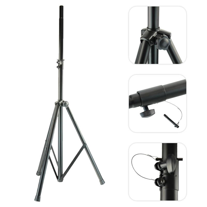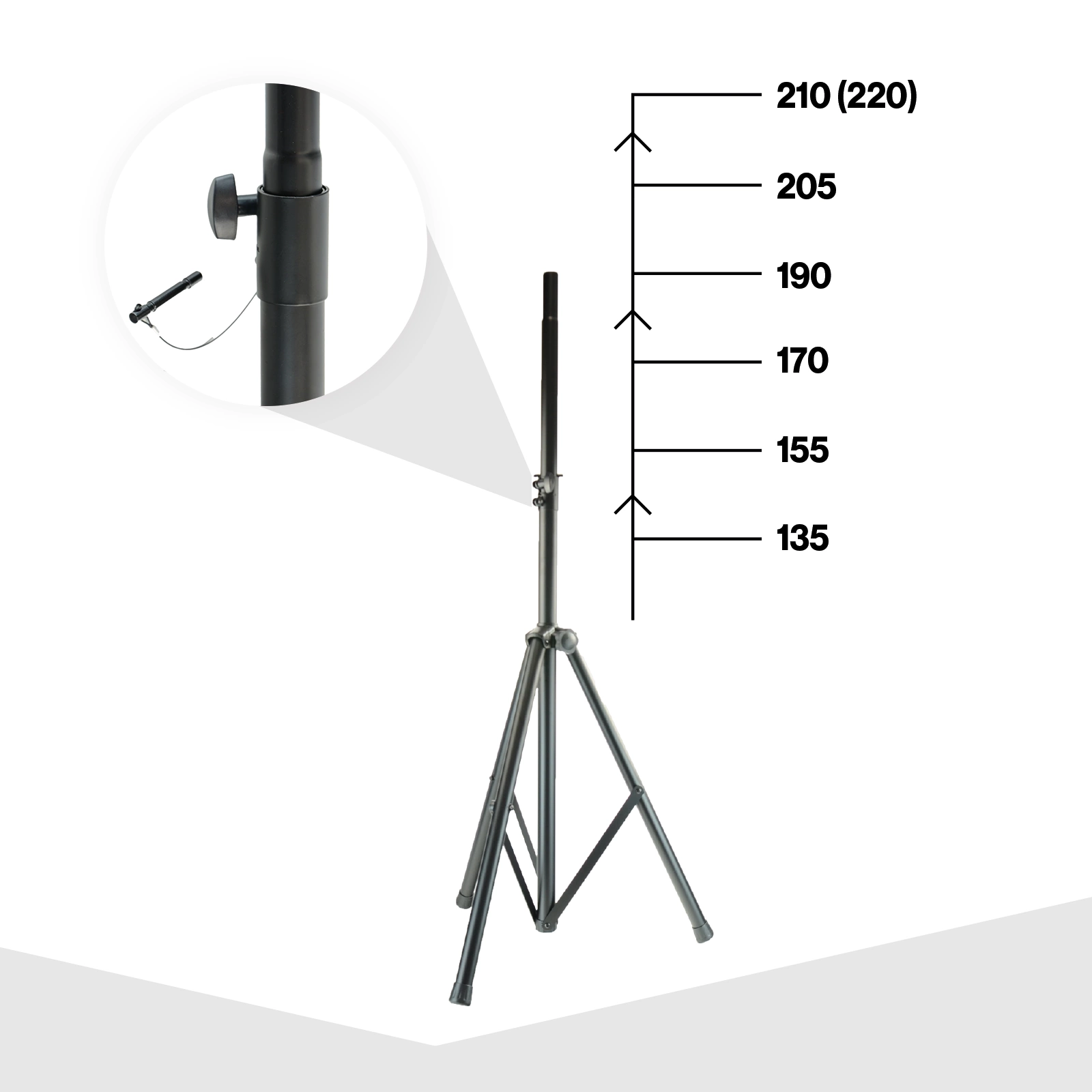Idealny do efektów świetlnych lub reflektorów LED. Dzięki solidnemu statywowi stojak stoi stabilnie. Maksymalna wysokość tego standardu to 2,2 metra, średnica rury to 35mm.