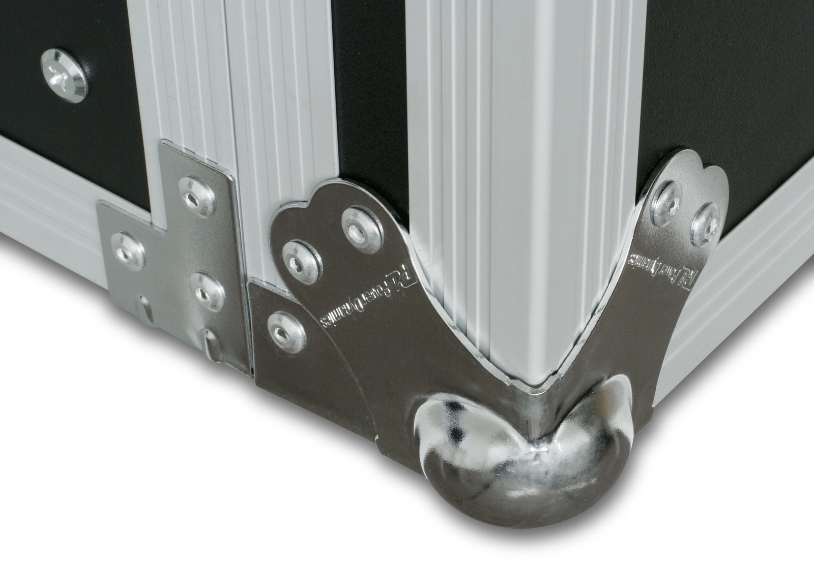 W tej skrzyni transportowej można umieszczać i transportować miksery o wysokości do 12U. Ukośne położenie szyn profilowych dla optymalnej współpracy z mikserem, sterownikiem itp. Sklejka z czarną powłoką, profile aluminiowe, stalowe chromowane narożniki kulkowe i zawiasy hakowe. Flightcase jest ładnie wykończony i wyposażony w dwa sprężynowe uchwyty i zatrzask motylkowy.