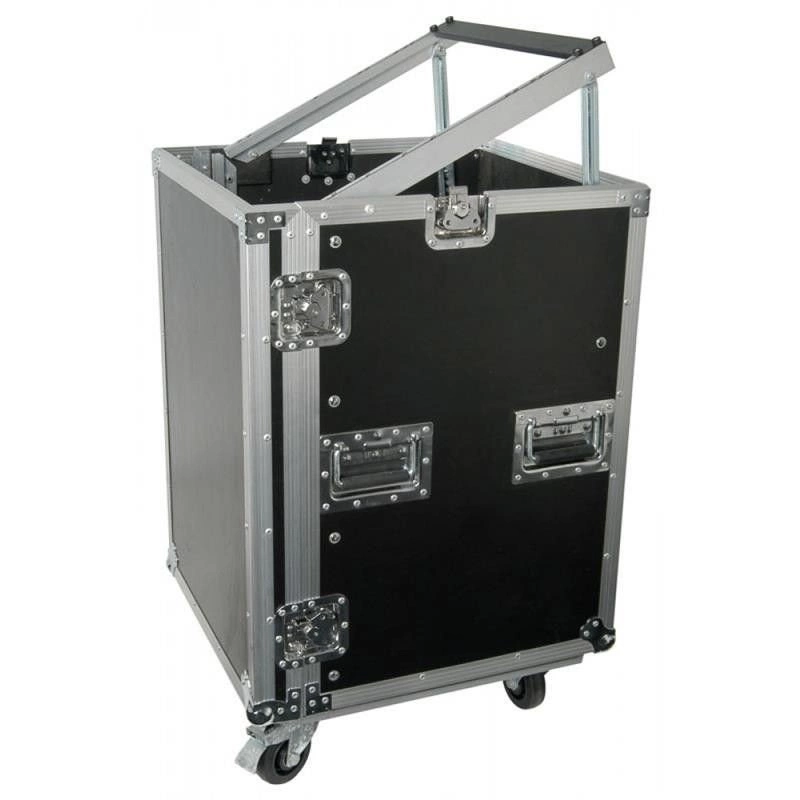 Mobilna, luksusowa szafa rack 16U z możliwością zamontowania (8U) miksera 19" na górze urządzenia.