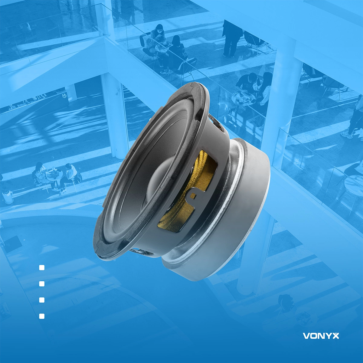 w polipropylenową membranę, która jest wyjątkowo lekka, sztywna i odporna na zniekształcenia, co gwarantuje czyste i głębokie brzmienie basu. Gumowe zawieszenie membrany dodatkowo zwiększa jej wytrzymałość, tłumiąc niepożądane drgania i minimalizując ryzyko uszkodzeń nawet przy intensywnym użytkowaniu. Taka konstrukcja sprawia, że dźwięk pozostaje klarowny i dynamiczny, niezależnie od rodzaju odtwarzanej muzyki.
