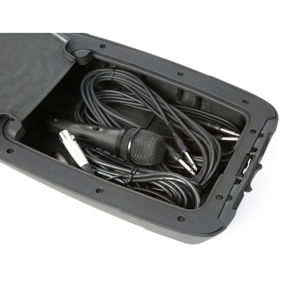 Pełny system 300W z aktywnym mikserem i schowkiem. Do systemu dołączony jest wysokiej jakości mikrofon przewodowy, dzięki czemu zestaw można od razu wykorzystać do wielu zastosowań takich jak przemówienia, prezentacje, pokazy, imprezy itp.