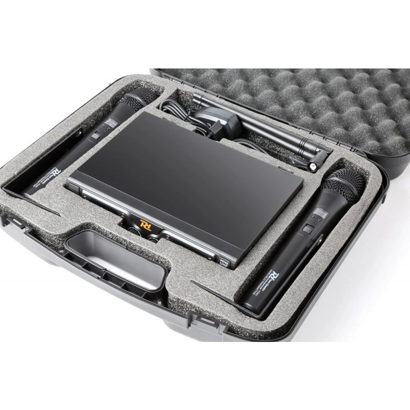 Power Dynamics PD782 - 2x 8 kanałowy, profesjonalny, bezprzewodowy system UHF z dwoma, doręcznymi mikrofonami, odbiornikiem i solidną walizką zapewniającą bezpieczny transport. Dzięki wyświetlaczowi LCD znajdującemu się na rączce mikrofonu, zmiana kanałów transmisji jest prosta i czytelna. Mikrofony działają w częstotliwościach 863-865 MHz i idealnie sprawdzą się na scenie, podczas prezentacji, wykładów, KARAOKE oraz przy nagrywaniu wokalu.