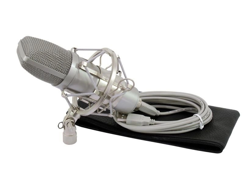 - Mikrofon dostarczany wraz z kablem zakończonym wtyczką USB oraz uchwytem
