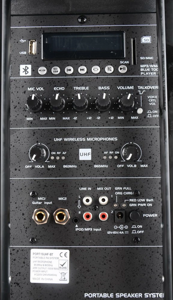 napakowany po sam głośnik ulepszeniami, łatwy w obsłudze, prosty w transporcie. A jeszcze dodatkowo posiadający wiele opcji kontrolowania dźwięku - czy to z kolumny, czy z mikrofonów. Tylny panel kolumny udostępnia użytkownikowi sporo pokręteł do regulacji, a jeśli nie chce Ci się wstawać z fotele lub stoisz za daleko - możesz sterować za pomocą dołączonego, bezprzewodowego pilota. I na koniec Tuner FM czyli dodatkowa opcja, która pozwoli Ci cieszyć się ulubionymi audycjami bez potrzeby podłączania radia.