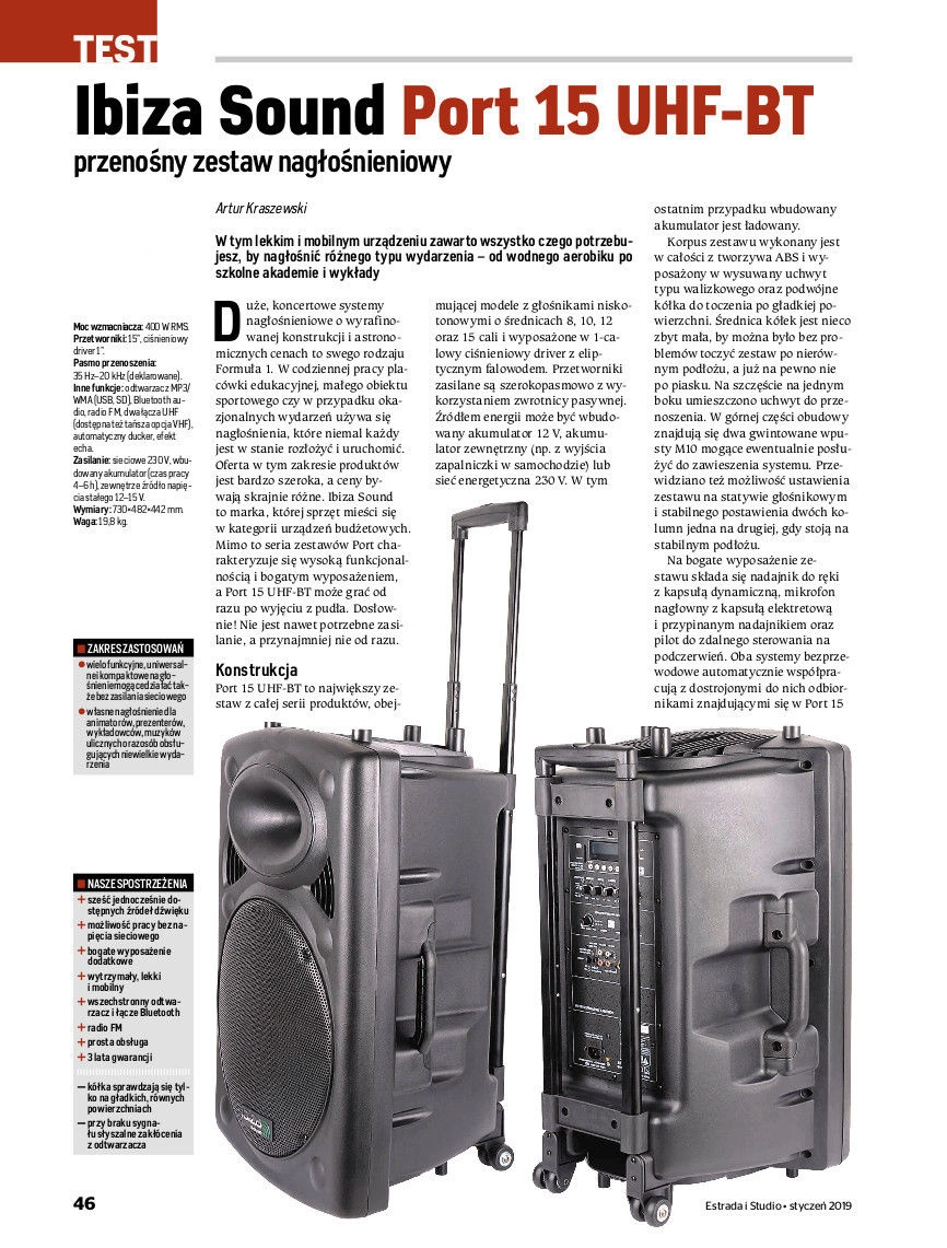 A teraz, w tym najnowszym modelu, dostajemy jakość UHF - niesamowitą możliwość i czystość bezprzewodowego sygnału. PORTy UHF są naturalnymi następcami naszej najpopularniejszej linii PORT VHF (w ramach, której mamy także kilka wielkości kolumn mobilnych). Różnica pomiędzy PORTem VHF a UHF to przede wszystkim czystsze brzmienie, ale również większy realny zasięg mikrofonów (około 50 metrów). W stosunku do mikrofonów VHF w wersji UHF mamy do czynienia z lepszej jakości urządzeniami, ich jakość może spokojnie być porównywana do mikrofonów marki Shure, charakteryzują się znacznie czystszym brzmieniem - przede wszystkim w tonach średnich/ górnych.