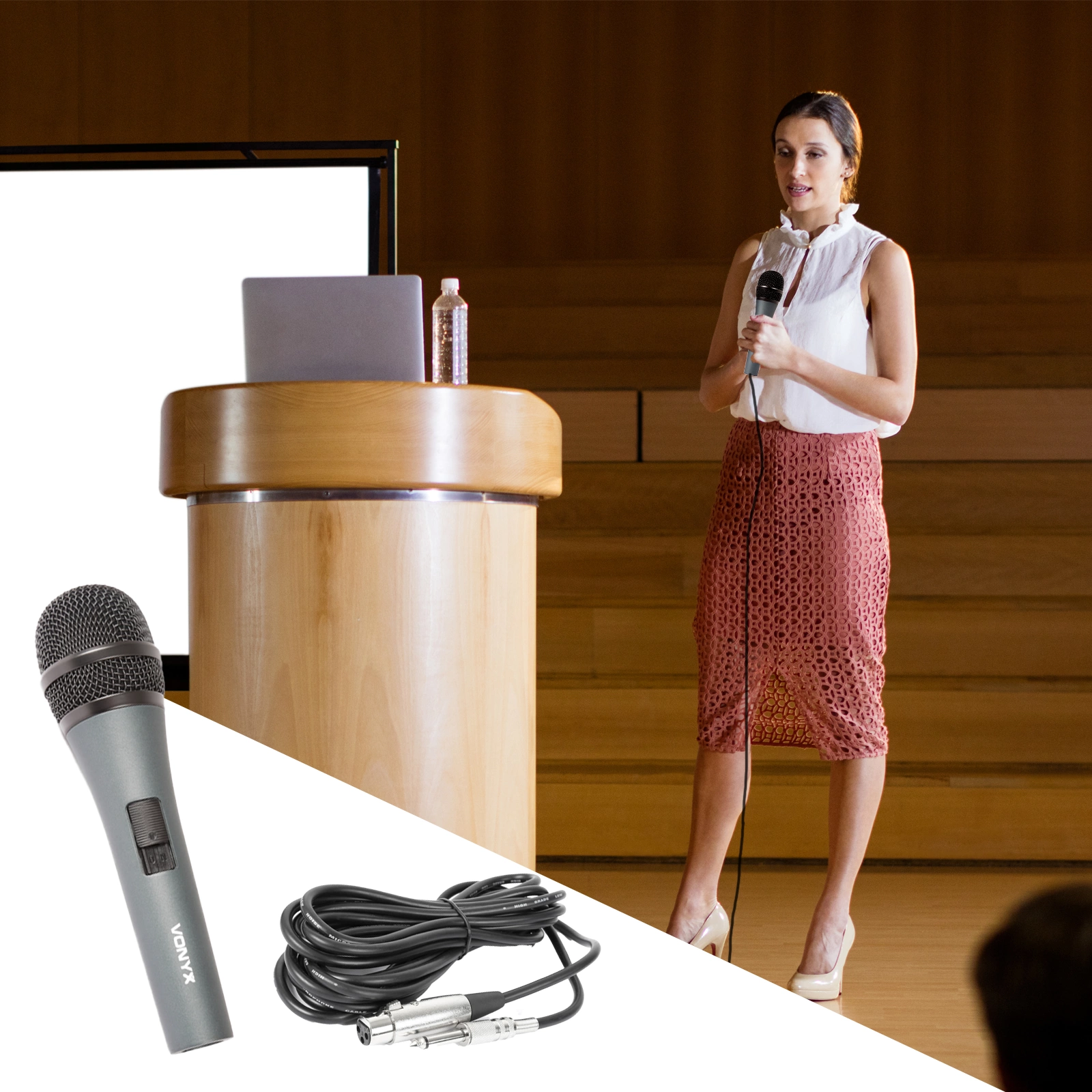 Wyglądaj dobrze z tym dynamicznym mikrofonem wokalnym Vonyx DM825 z kablem. Kompletny mikrofon, który można podłączyć natychmiast po odbiorze.