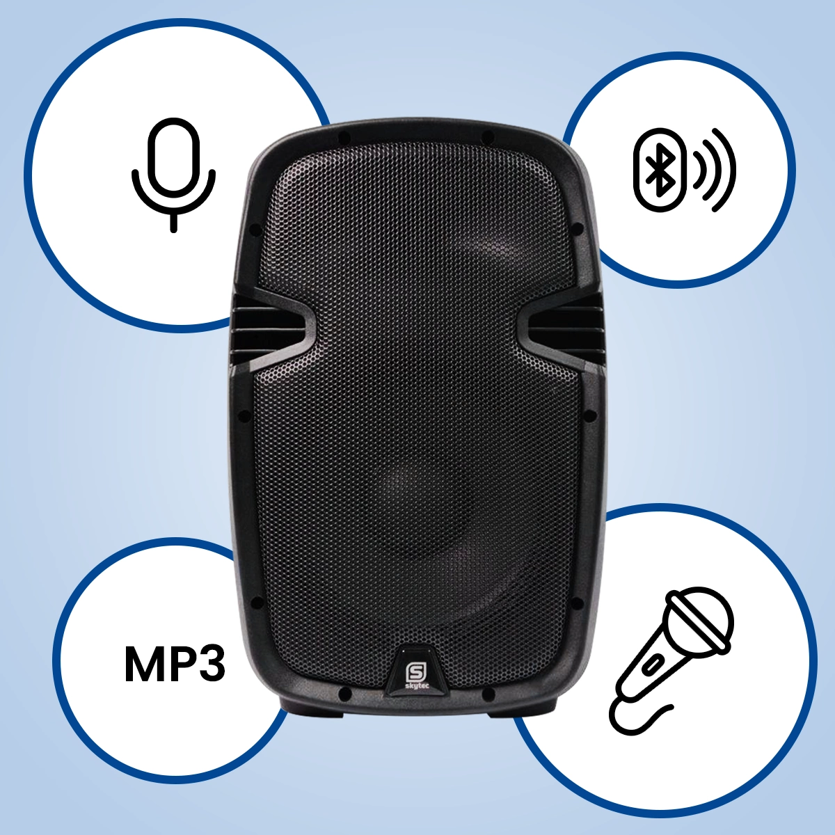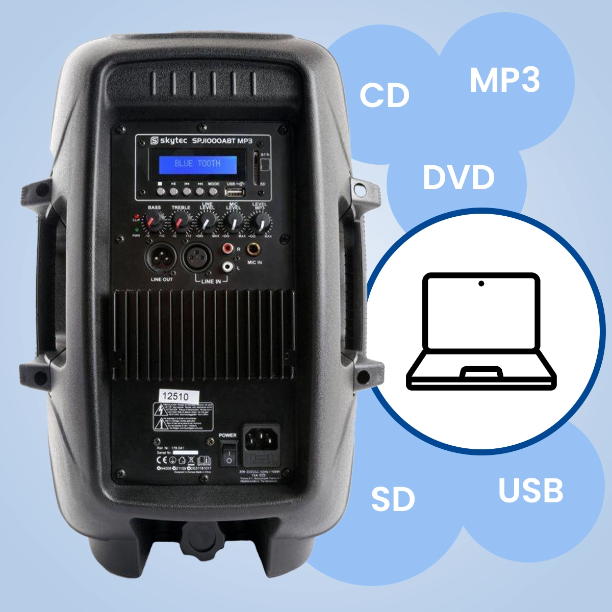 W takim razie aktywny głośnik SPJ-1000ABT 400W z Bluetooth i odtwarzaczem MP3 jest dla Ciebie! SPJ-1000ABT jest natychmiast gotowy do odtwarzania Twojej ulubionej muzyki po podłączeniu do zasilania. Podłączając bezprzewodowy zestaw mikrofonów lub mikrofon przewodowy, możliwe jest również odtworzenie Twojego głosu (śpiewu) przez głośnik. Impreza z karaoke, prezentacją, przemówieniem lub po prostu muzyką… to wszystko jest możliwe dzięki SPJ-1000ABT. Dzięki wbudowanemu wzmacniaczowi 400W, kable i trudności z podłączeniem należą już do przeszłości.