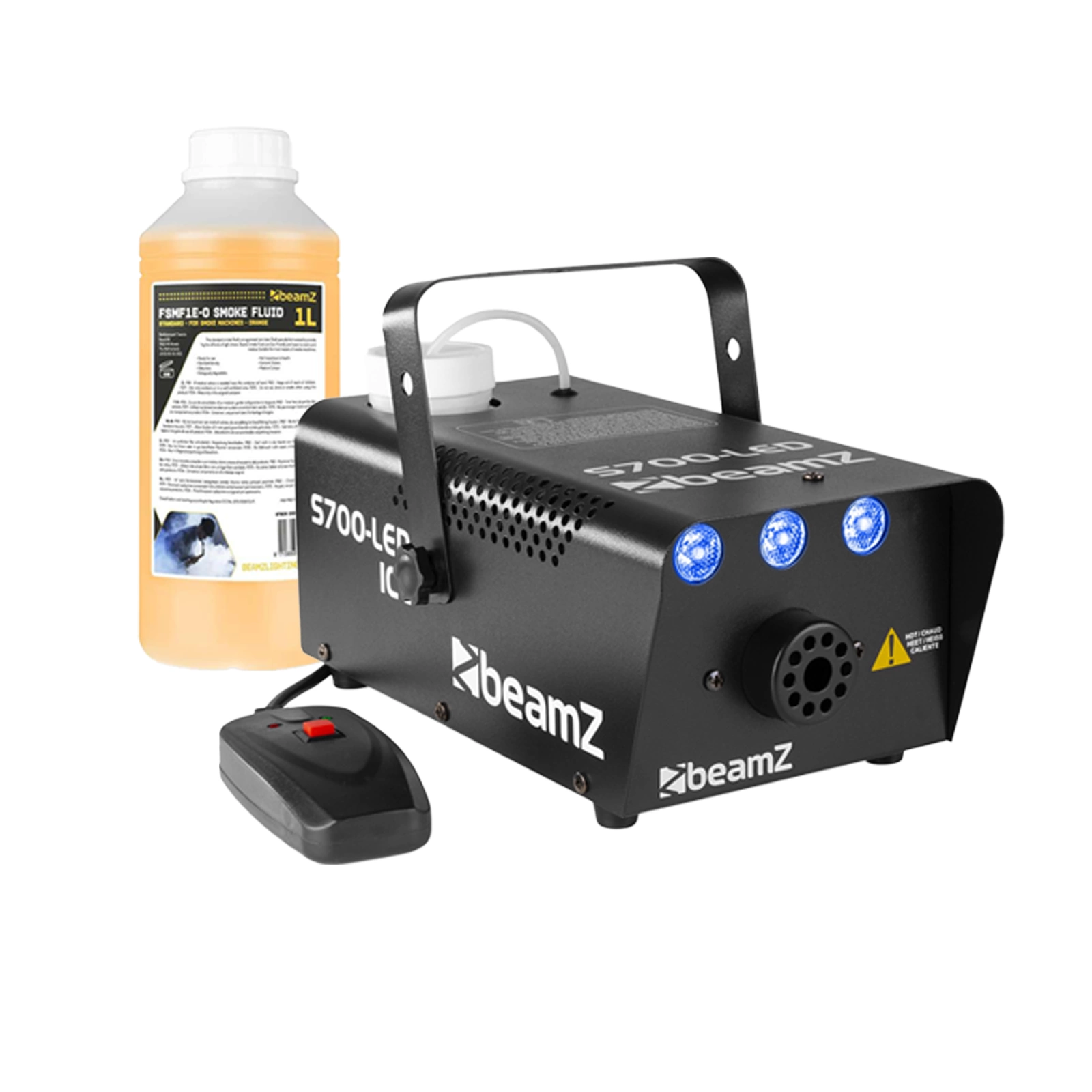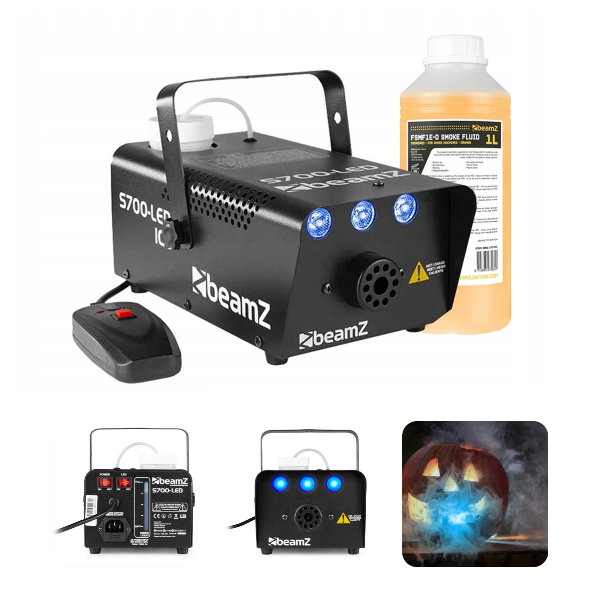 BeamZ S700LED można łatwo kontrolować za pomocą dołączonego pilota. Po rozgrzaniu maszyny wystarczy wcisnąć przycisk, aby w pomieszczeniu pojawił się dym i przyjemny efekt lodu.