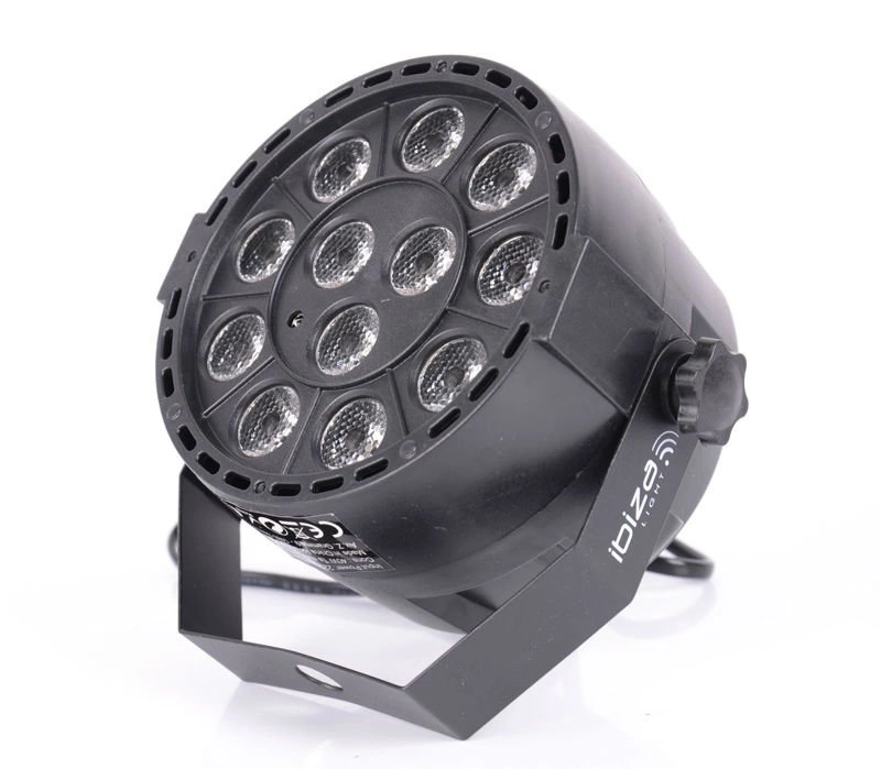 Niesamowicie mocne jak na taki kompaktowy reflektor diody LED12 x 1W RGBW (czerwony, zielony, niebieski, biały) mogą działać w trybie automatycznym, muzycznym lub DMX. Jest to bardzo fajny efekt w relatywnie niskiej cenie, który swoim światłem wypełni dużą powierzchnię parkietu.
