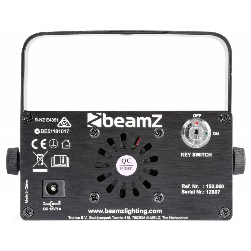 Tworzy niezliczoną ilość promieni z wirującymi wzorami, które pokryją każdą powierzchnię: ściany, parkiet, sufit. Laserem można sterować załączonym, bezprzewodowym pilotem, który umożliwia przełączanie urządzenia pomiędzy trybami auto, a aktywacją dźwiękiem. Laser posiada zabezpieczenie kluczykiem. Ze względu na ogromną ilość wiązek laserowych, które wychodzą z obudowy pod dużym kątem, BeamZ Bianca ma bardzo duży zasięg. Rozpieść swoją publiczność BeamZ Bianca i zapewnij niezapomniany wieczór.