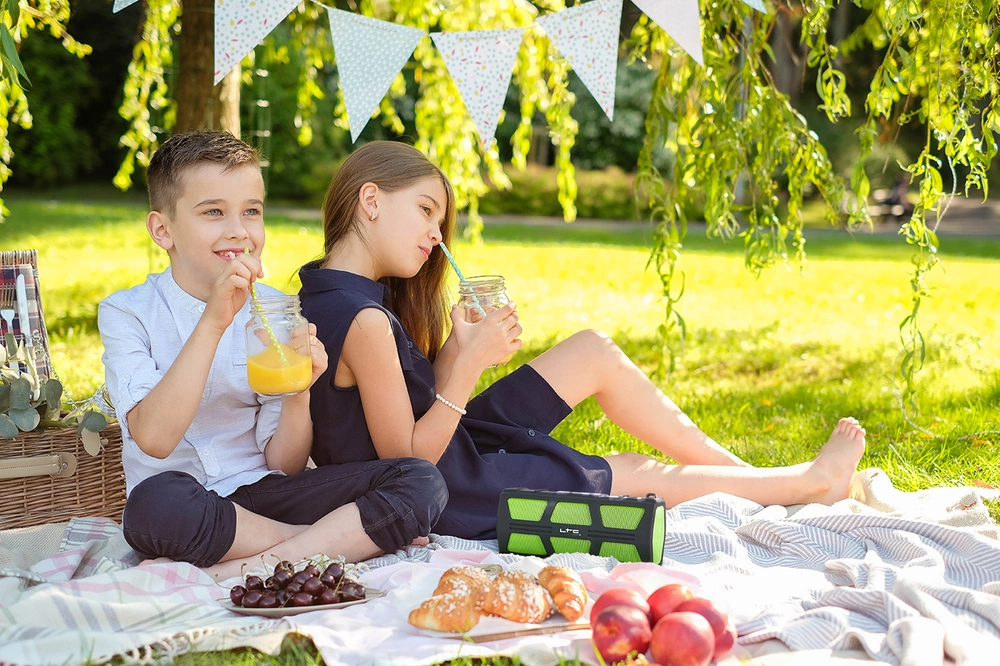 Za pomocą modułu bluetooth możesz puszczać swoją muzykę łącząc się bezpośrednio z telefonem, a także prowadzić rozmowy telefoniczne w trybie głośnomówiącym. Dzięki solidnej, ochronnej obudowie z miękkiej gumy jest idealny żeby zabrać go ze sobą na zewnątrz - na plażę, wycieczkę rowerową, piknik czy kemping.