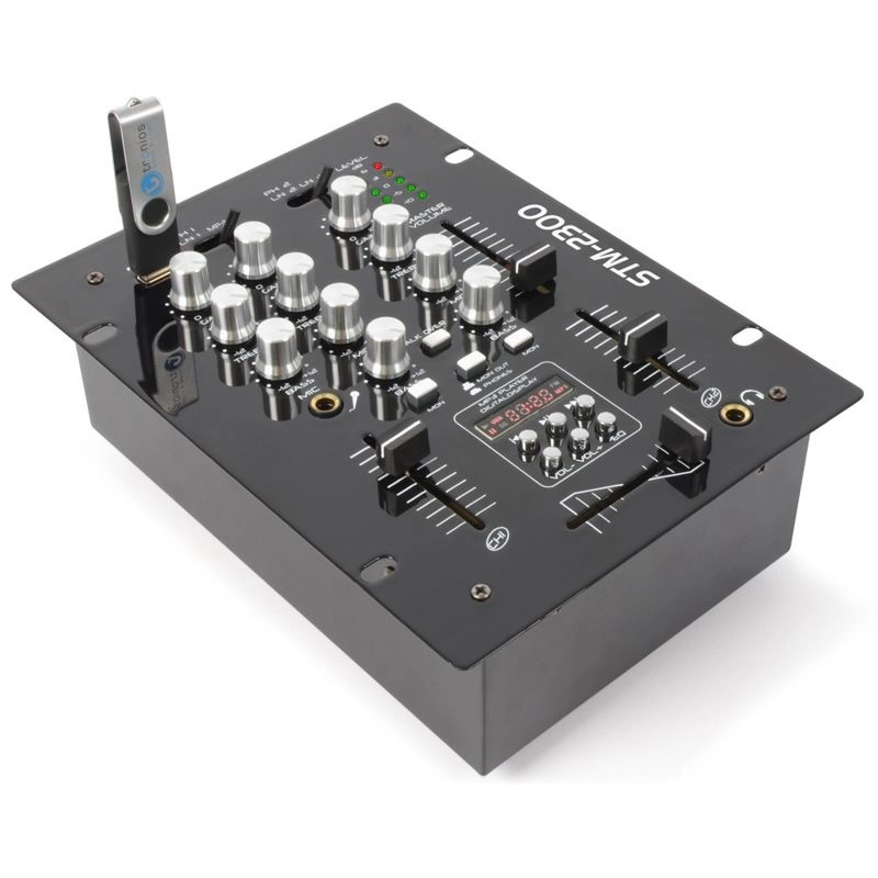 Ma wejście liniowe, phono oraz wyjście na monitory z możliwością łatwego przełączania. Każdy kanał ma 3-pasmowy equalizer. Kanał mikrofonu jest wyposażony w 2-pasmowy korektor i kontrolę poziomu. Mikser wyposażony jest w przełącznik crossfader, odpowiedzialny za płynne przejście pomiędzy sygnałami z różnych źródeł. Jakość dźwięku i zakres dynamiczny sprawiają, że mikser jest jednym z najlepszych w swojej klasie. STM-2300 to atrakcyjny mikser dla każdego.