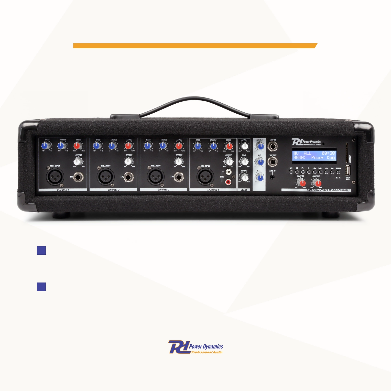 Power Dynamics PDM-C405A to 4-kanałowa konsola mikserska z wbudowanym wzmacniaczem
