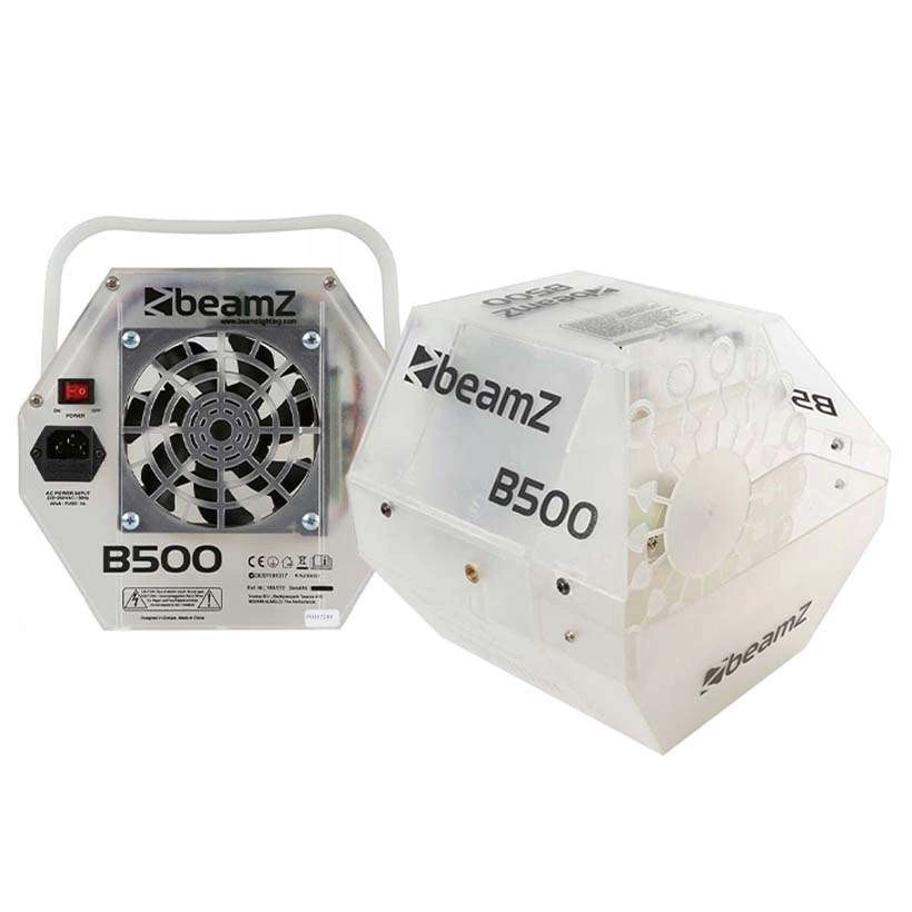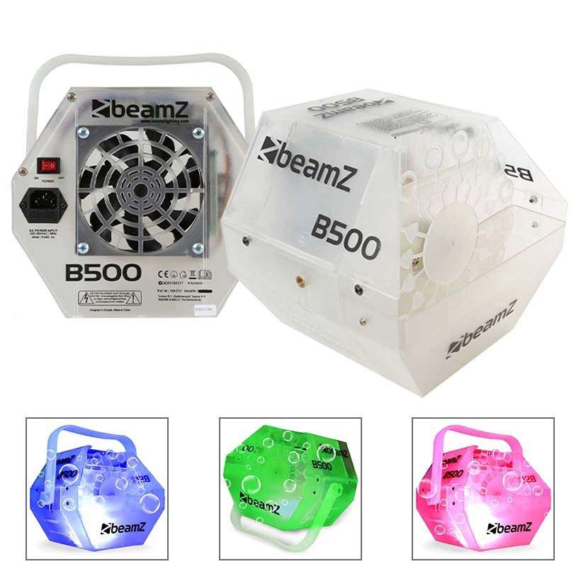 BeamZ B500 LED RGB to wysokiej jakości wytwornica baniek mydlanych z kolorowym podświetleniem LED RGB (czerwony, zielony, niebieski) i dużą wydajnością. Dzięki technologii Plug & Play wystarczy podłączyć zasilanie, by rozpocząć kolorową zabawę z baniek!