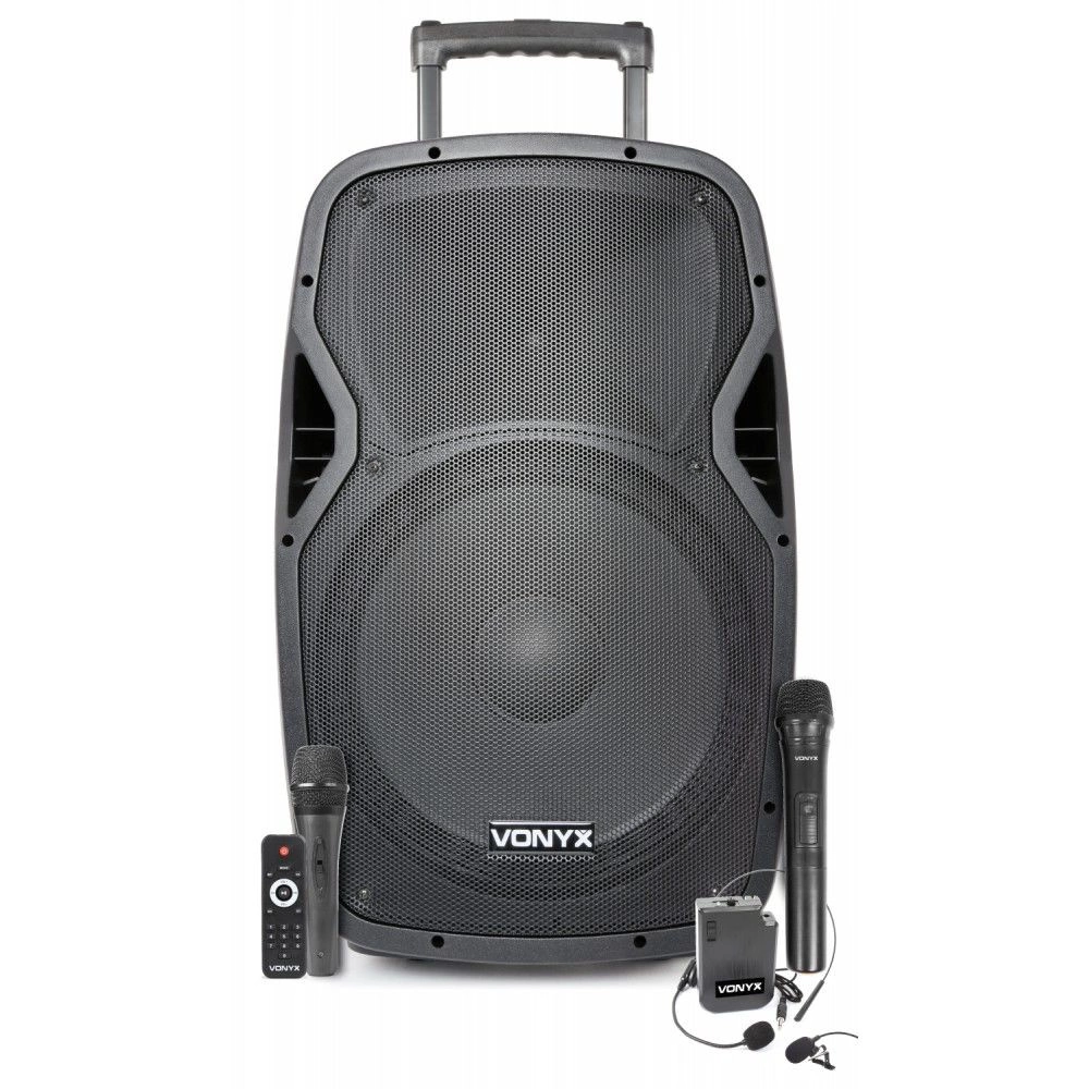 Vonyx AP1500PA 800W i jest wyposażona we wbudowaną baterię i odtwarzacz MP3 oraz w aż 4 mikrofony. Dwa doręczne bezprzewodowe UHF oraz mikrofon nagłowny i krawatowy. Kompletny pakiet zawierający wszystko, czego potrzebujesz na miły wieczór karaoke, imprezę , demonstrację, prezentację itp.