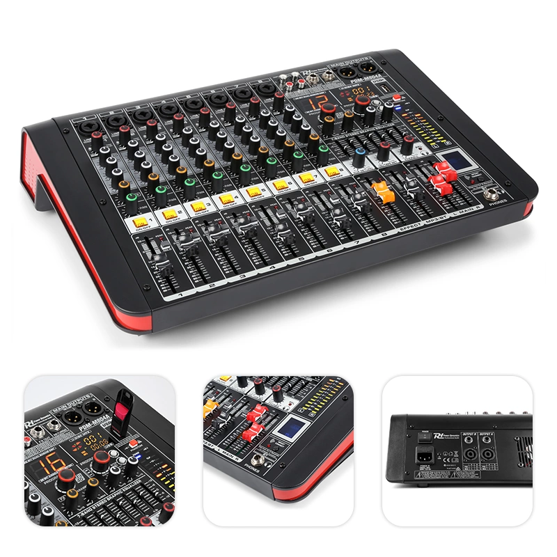 Power Dynamics PDM-M804A to 8-kanałowy mikser muzyczny z wbudowanym wzmacniaczem, który jest szczególnie odpowiedni do zastosowań na żywo. Z nie mniej niż 8 kanałami, z których każdy może być używany do mikrofonu, instrumentu lub innego źródła dźwięku, nie zabraknie Ci produktu. Dziewiąty kanał można znaleźć w postaci modułu Bluetooth i odtwarzacza mp3 USB. DSP z 16 24-bitowymi efektami zapewnia zabawne i funkcjonalne efekty, a dzięki korektorom można dostosować dźwięk do własnych upodobań, aby uzyskać optymalny dźwięk.