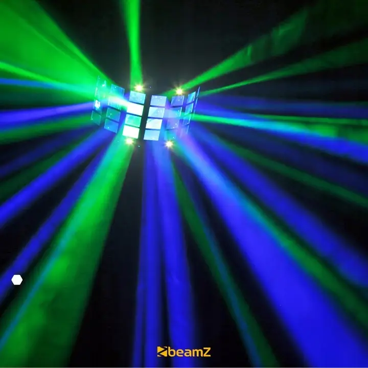 z 3 x RGB 3W i 14 x SMD LED stroboskopowymi. Różne tryby: sterowanie muzyką lub tryb automatyczny. Regulowana prędkość w trybie automatycznym. Beamz LED Butterfly zapewnia potężne efekty świetlne i przekształca każdą przestrzeń w świetlny pokaz.