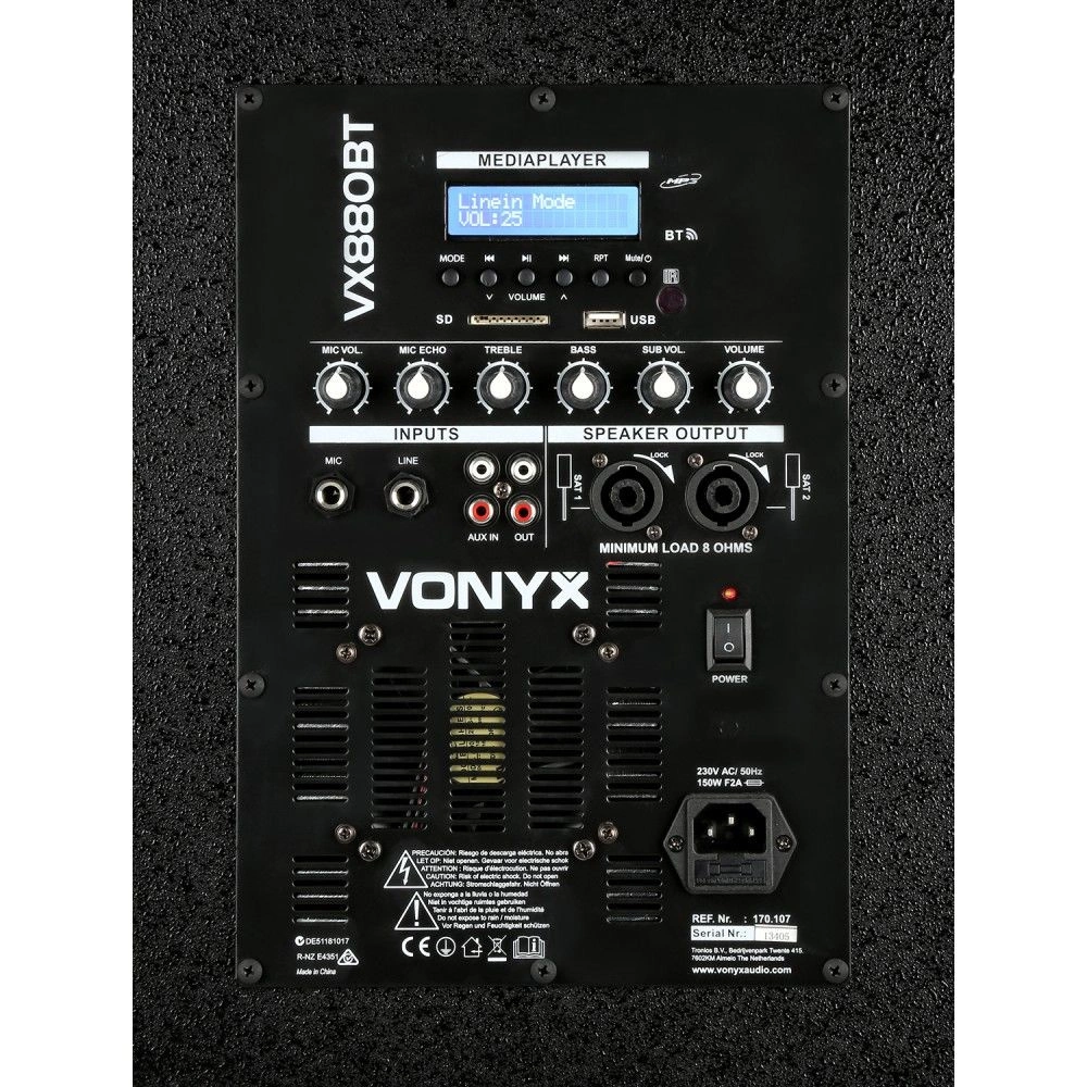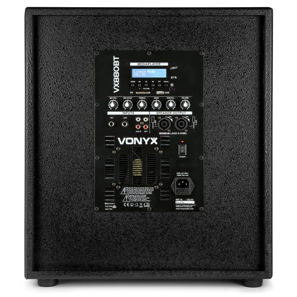 Aby wydobyć dźwięk z VX880BT, musisz najpierw coś do niego włożyć. Za pomocą VX880BT można to zrobić na kilka sposobów. Przede wszystkim istnieje opcja Bluetooth. Połącz się bezprzewodowo z telefonem lub tabletem, a muzyka odtwarzana na sparowanym urządzeniu będzie słyszalna (bezprzewodowo!) przez zestaw. Inną przydatną opcją jest wbudowany odtwarzacz MP3, za pomocą którego muzykę MP3 zapisaną na pamięci USB lub karcie SD można odtwarzać bezpośrednio z pamięci USB lub karty SD. Moduł wewnętrzny może być obsługiwany zdalnie za pomocą dołączonego pilota. Dla wszystkich innych źródeł dostępne jest wejście RCA, do którego można podłączyć prawie wszystkie urządzenia audio. Mikser, odtwarzacz CD, odtwarzacz DVD, komputer, laptop.
