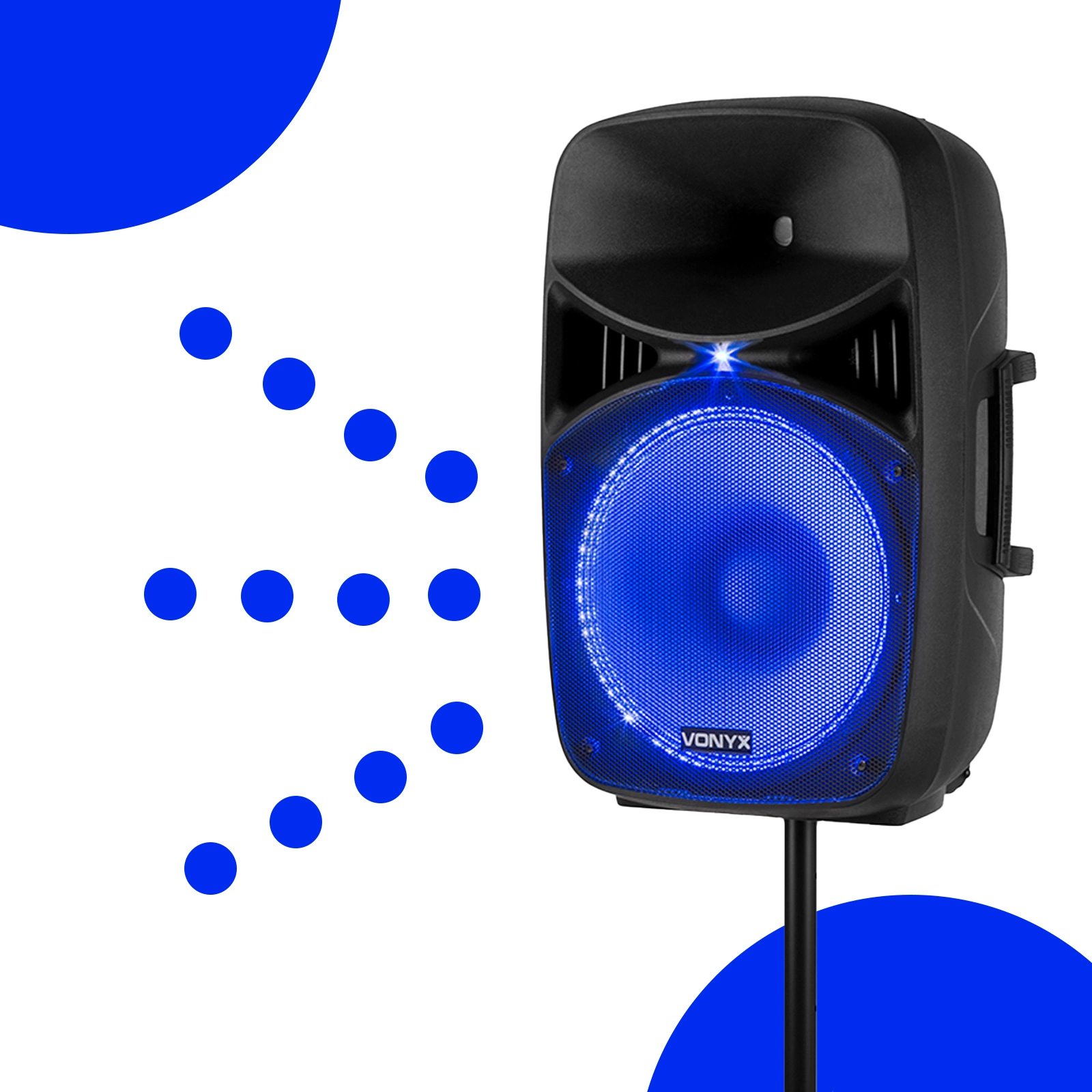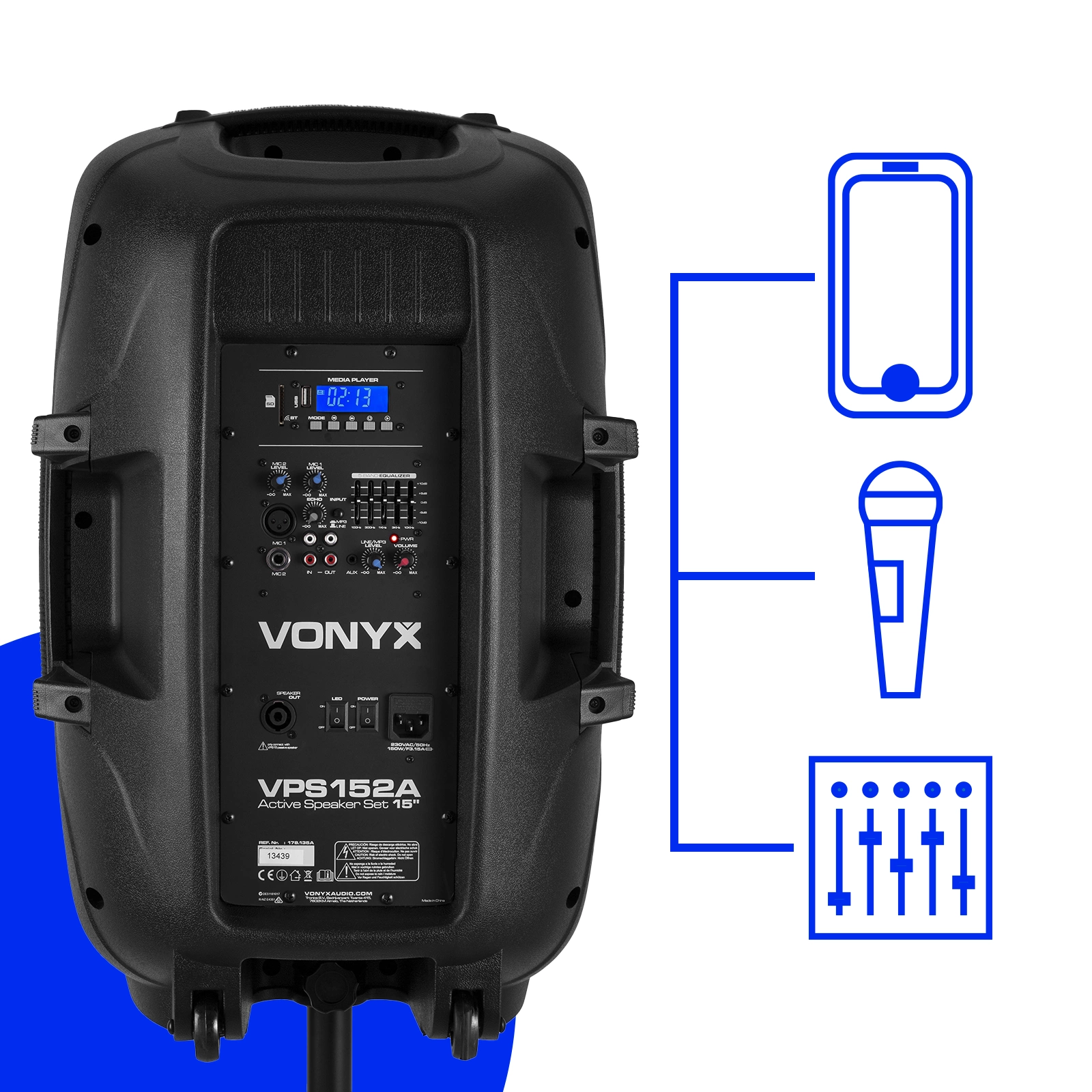 Vonyx VPS152A jest zatem w pełni wyposażony i gotowy do użycia w ciągu kilku minut.