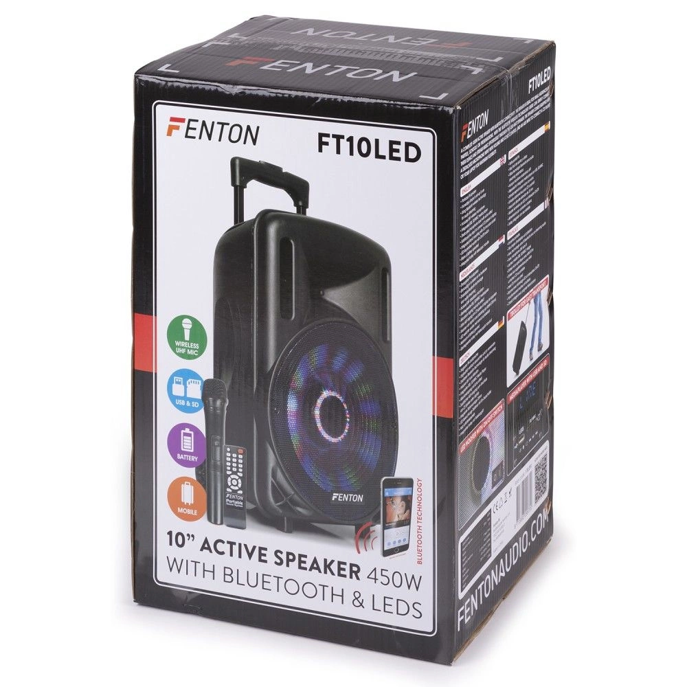 Poznaj FENTON FT10LED – kompaktowy, a jednocześnie mocny głośnik przenośny Bluetooth o mocy 450W z dynamicznym brzmieniem, kolorowym podświetleniem LED i mikrofonem bezprzewodowym UHF. To idealna kolumna aktywna 10 cali do użytku domowego i mobilnego.
