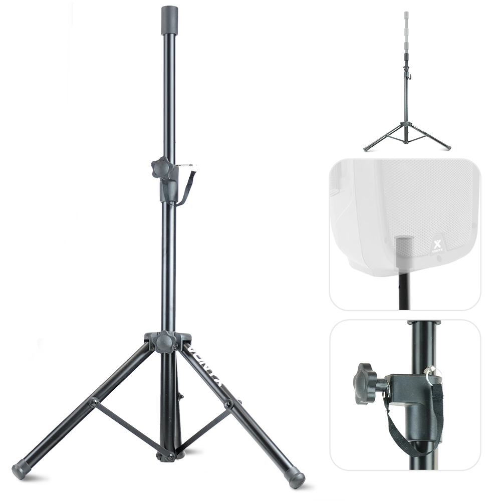Statyw kolumnowy w kolorze czarnym. Statyw o dobrej jakości wykonania, solidnym łączeniu i zacisku, oraz udźwigiem do 20 kg, dedykowany przede wszystkim do mniejszych i średniej wielkości kolumn pasywnych i aktywnych (przede wszystkim tych na głośnikach 8-10 cali). Ze względu na mniejszy od typowych statywów kolumnowych rozmiar, statyw idealnie nadaje się do pracy mobilnej. Mieści się bez problemu w standardowym bagażniku samochodu osobowego. Statyw dedykowany jest przede wszystkim do użytku mobilnego, obsługi eventów i konferencji, oraz mniejszych imprez.