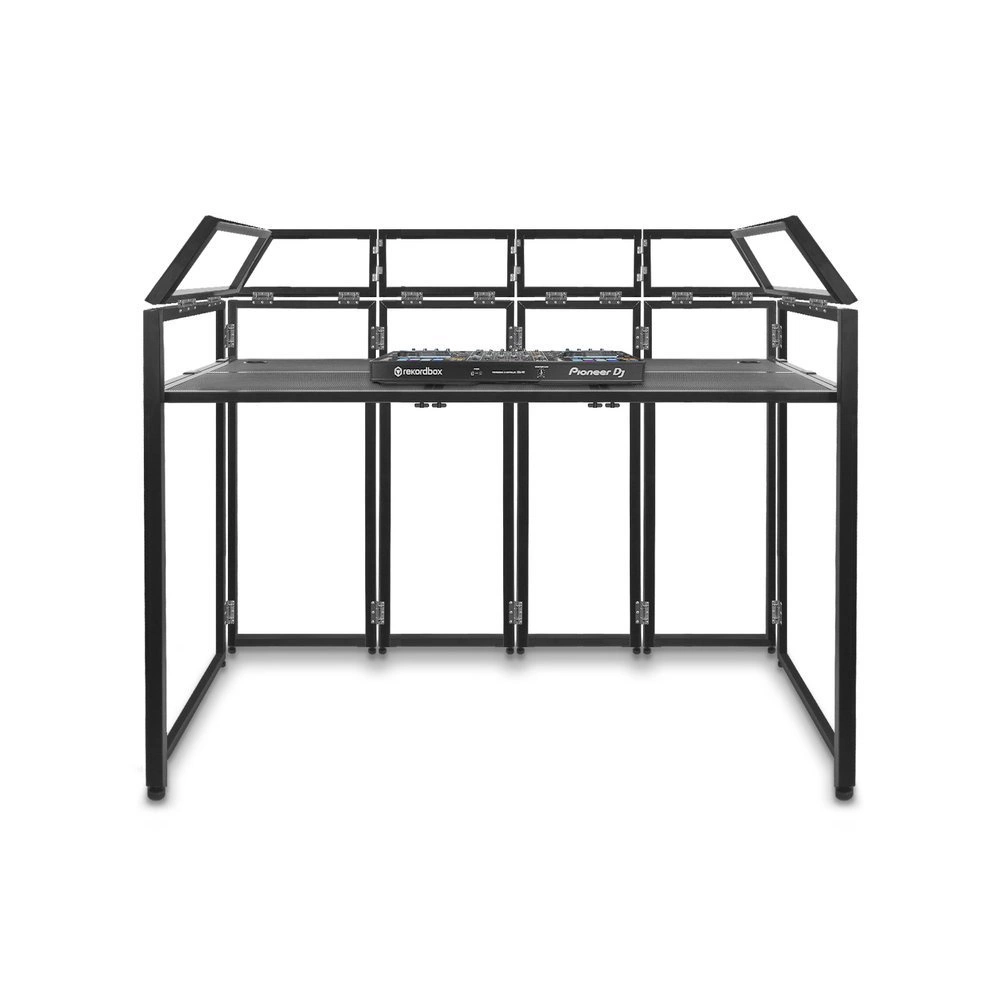 Całkowicie składana, bardzo duża kabina DJ-a do ustawiania sprzętu DJ-skiego. Stanowisko DJ-a XL ma zintegrowany stół o idealnej wysokości roboczej 88,5 cm. Cały system składa się z paneli, które są składane, dzięki czemu montaż i demontaż jest bardzo łatwy i zajmuje niewiele czasu. Oszczędza to czas na inne rzeczy i przygotowania, które są ważne dla występu.