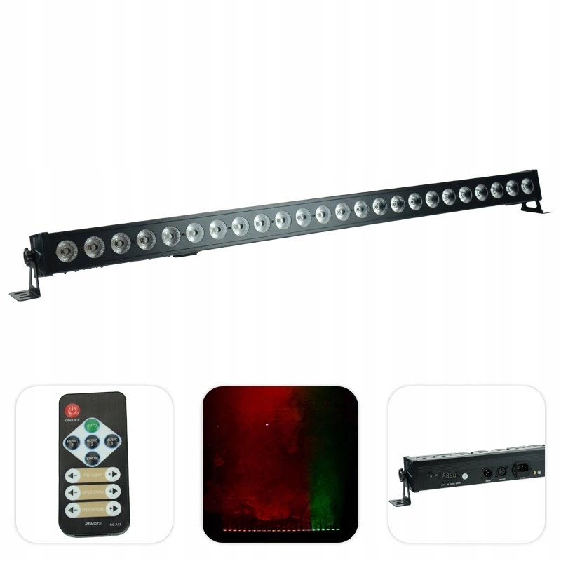 to profesjonalne oświetlenie z mocnymi, 24 diodami RGBW LED 4 w 1. Podczas korzystania z urządzenia w trybie autonomicznym mamy do wyboru kilka wgranych programów lub możemy aktywować urządzenie w trybie reagowania na dźwięk. Urządzenie pracuje także w trybie DMX, lub w master slave, umożliwiające szeregowe łączenie podobnych jednostek. Natomiast dodatkowe wyjście IEC umożliwia podłączenie łańcuchowo kliku belek ze sobą.