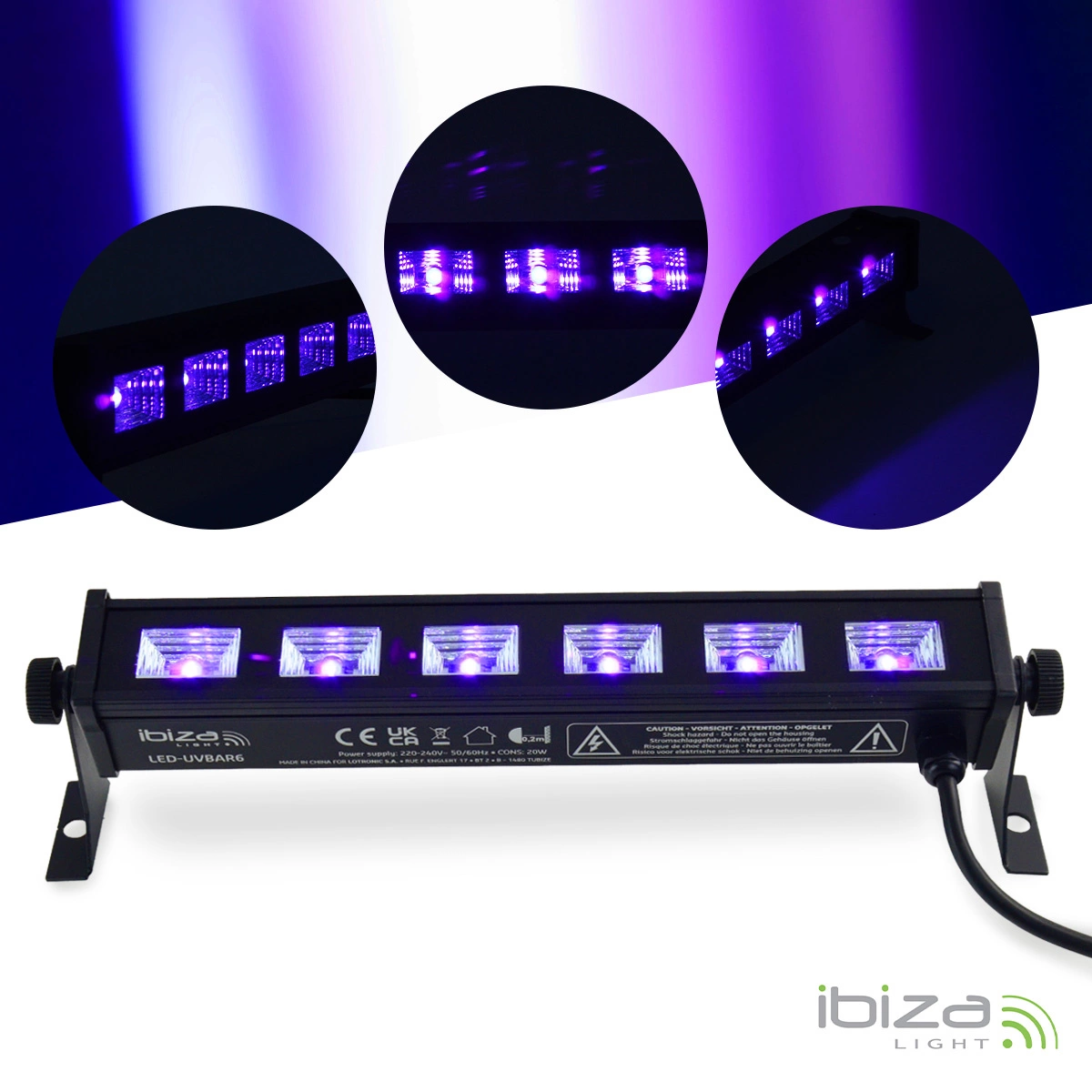 to oświetlenie typu LED BAR z efektem UV z 6 diodami LED UV w układzie 6x 3W.