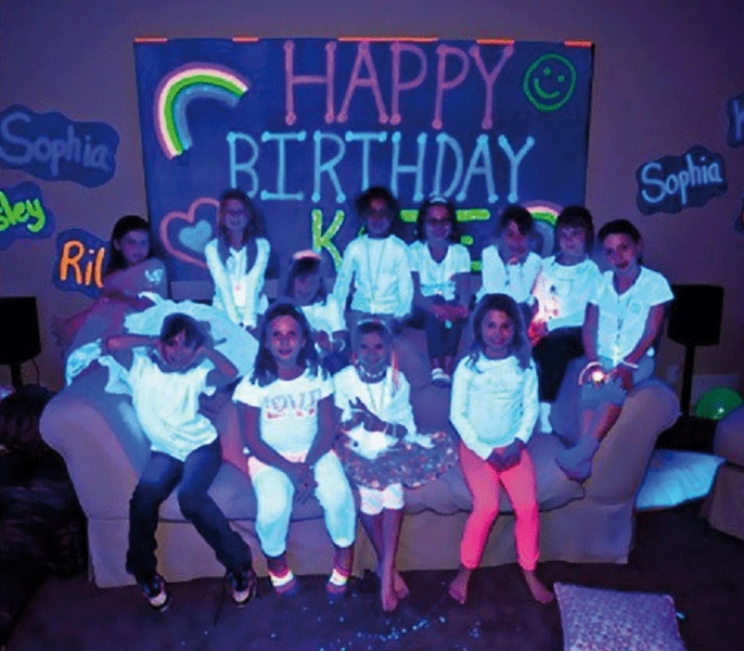 widoczny jest na białych powierzchniach. Atrakcja na wszystkie imprezy, wesela kinder party ! Światło UV tworzy nadprzyrodzony efekt, gdy czarne światło odbija się od białych tkanin lub farb do ciała.
