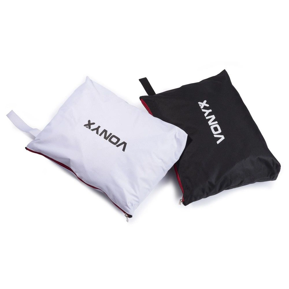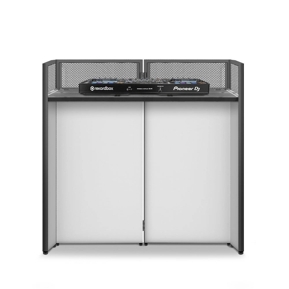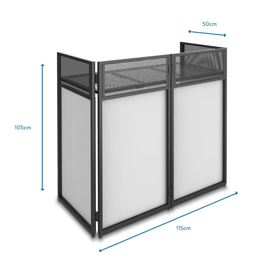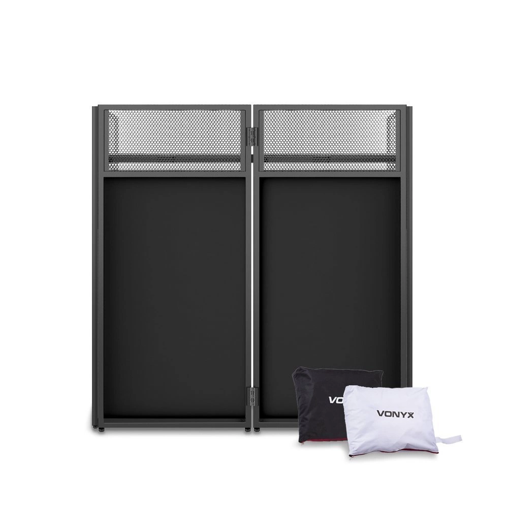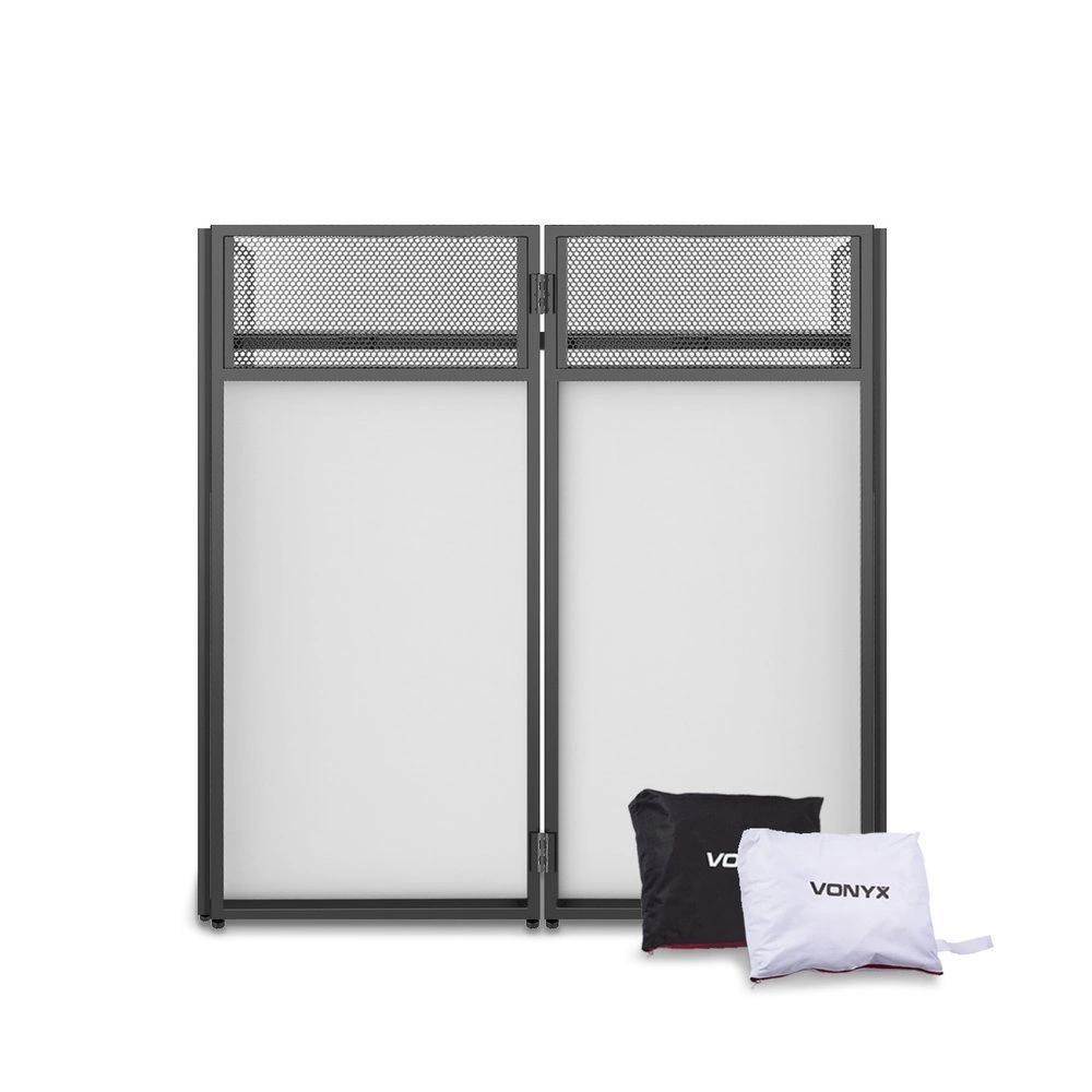 Profesjonalny parawan DJ Vonyx DB4 Pro – składany stół DJ z pokrowcem, białe i czarne osłony