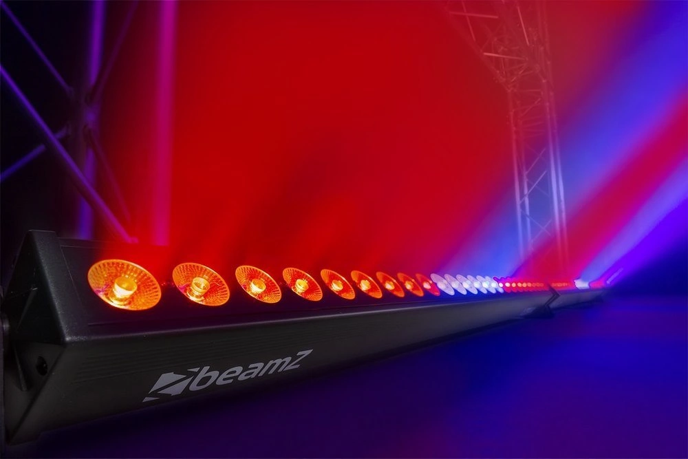 BeamZ LCB244 to listwa LED z 24 diodami o mocy nie mniejszej niż 4W na jedną diodę, podzielonych na 8 oddzielnie sterowanych sekcji. Każda dioda LED ma 4 kolory, co daje szerokie możliwości mieszania kolorów. Dzięki temu za pomocą LCB244 można uzyskać prawie każdy kolor, 8 oddzielnie sterowanych sekcji po 3 diody LED na sekcję zapewnia, że LCB244 jest w stanie stworzyć piękne efekty świetlne. Oczywiście efekt ten staje się znacznie bardziej imponujący, gdy kilka współpracujących jednostek jest używanych obok siebie. W przypadku korzystania z wielu jednostek LCB244 można je łączyć ze sobą zarówno pod względem sterowania (DMX), jak i zasilania. W ten sposób wiele jednostek można podłączyć do jednego gniazda zasilania, co oszczędza cenny czas instalacji.