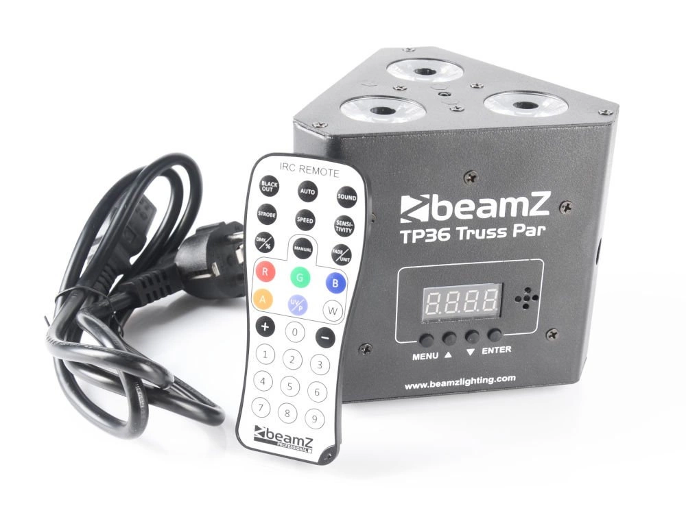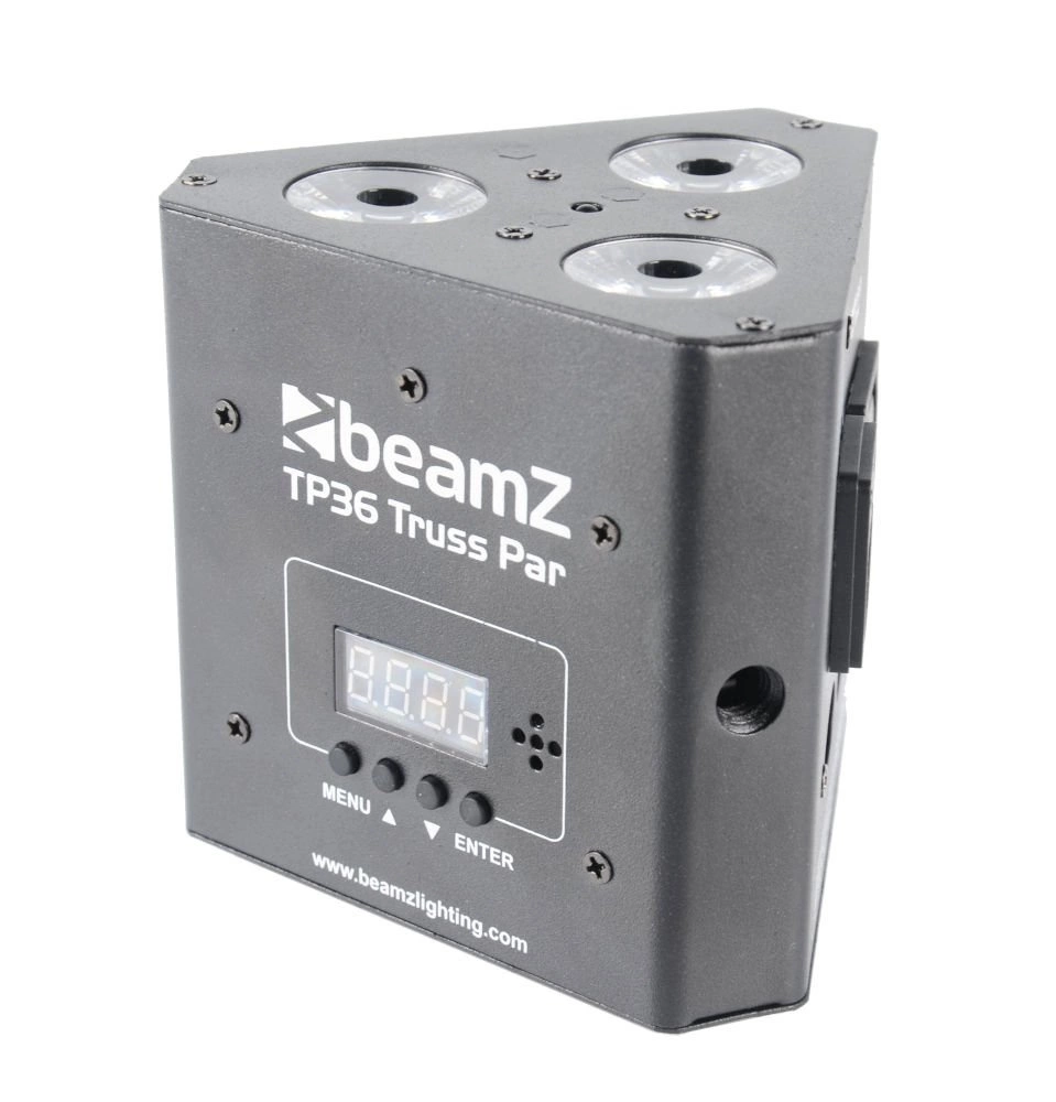 BeamZ TP36 to bardzo wszechstronna lampa do oświetlania trójkątnych części kratownic. BeamZ TP36 to właściwy wybór w przypadku efektownych i szybko zmieniających się efektów kolorowych, a także światła statycznego. Ze względu na solidną konstrukcję i łatwą obsługę nadaje się również do wynajmu.