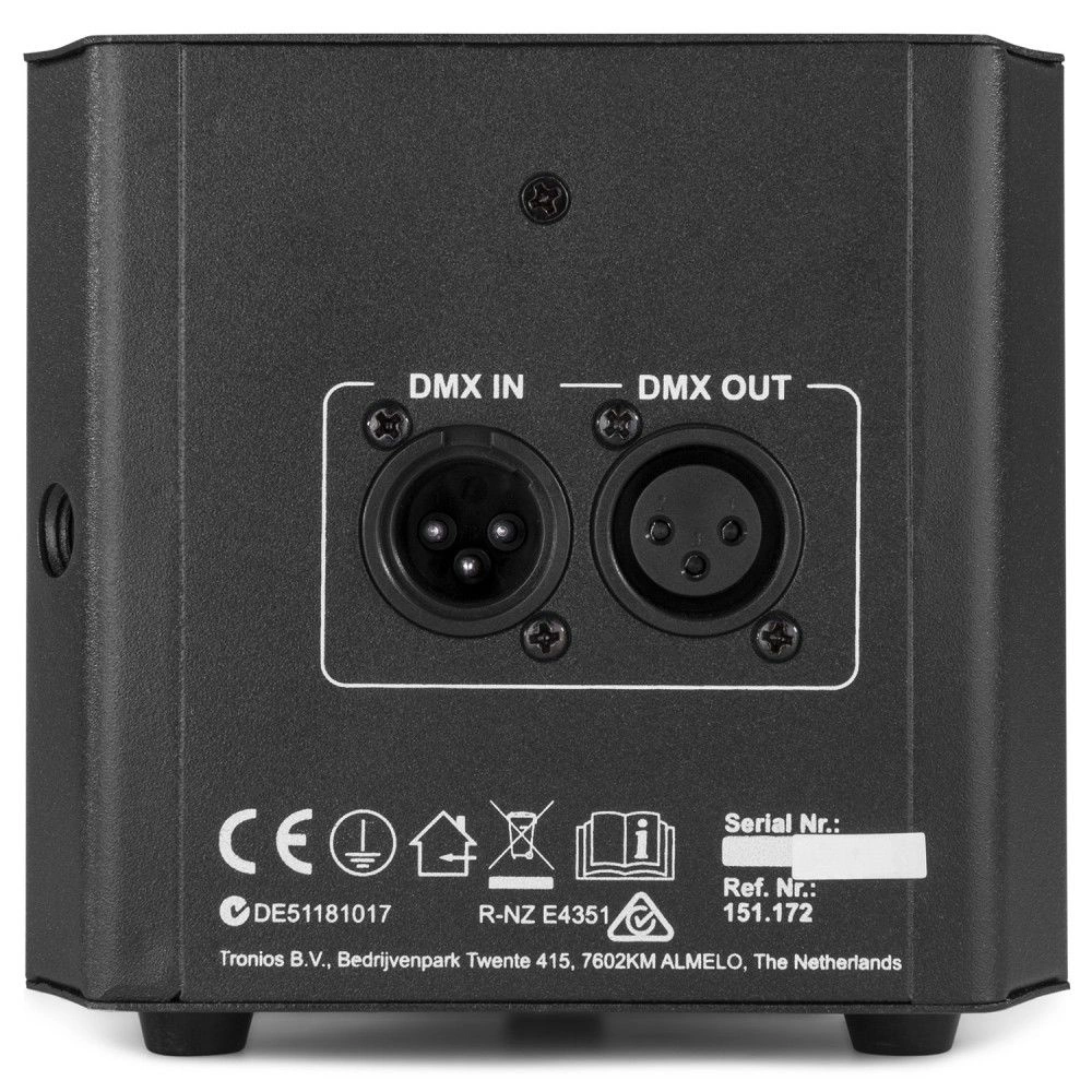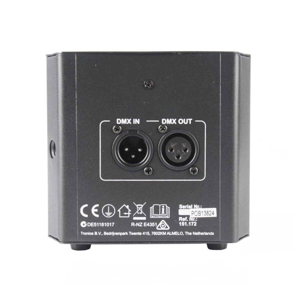 Do sterowania TP36 można użyć DMX, dołączonego pilota lub opcji autonomicznych, gdzie można wybierać pomiędzy kilkoma wbudowanymi programami lub sterować dźwiękiem. W trybie DMX możesz wybierać pomiędzy 3, 4-1, 4 lub 8 kanałami DMX, przy czym przy 8 kanałach możesz oczywiście przejąć pełną kontrolę nad TP36. Kolor lampy można szybko dostosować za pomocą dołączonego pilota, co jest bardzo proste, zwłaszcza jeśli zależy nam na stałym kolorze. W trybie automatycznym jeden z zaprogramowanych programów można wybrać na samym efekcie lub za pomocą pilota. Dzięki kontroli dźwięku lampa działa na dźwięk i kontroluje wszystko pod względem koloru i samego efektu. Tryb sterowania dźwiękiem można również włączyć na samej lampie lub za pomocą pilota.