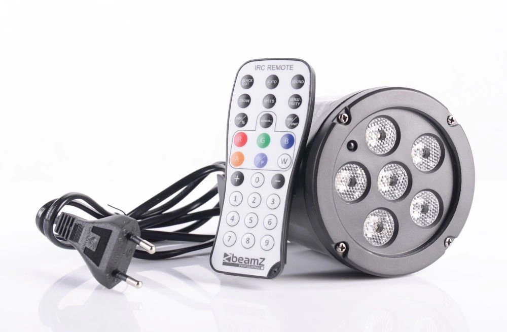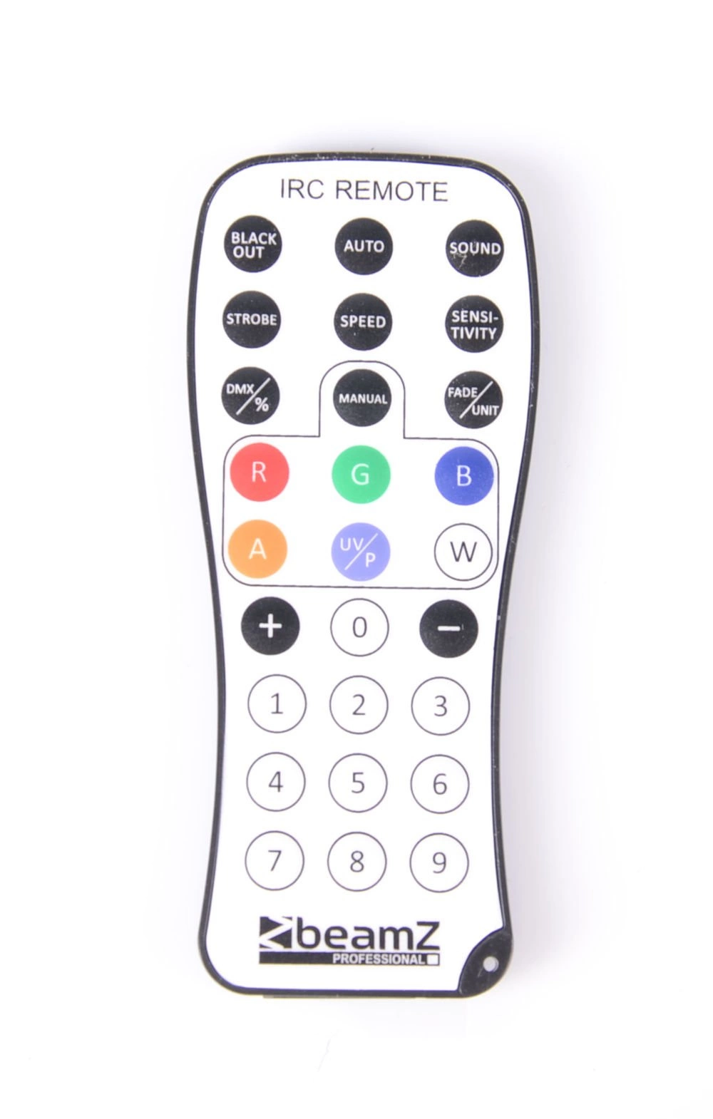 BeamZ SlimPar30 jest dostarczany z poręcznym pilotem, który ułatwia zdalną obsługę. Wybierz program, kolor lub pozwól spotowi reagować na dźwięk, wszystko jest możliwe. Inną opcją jest operacja na samej lampie.