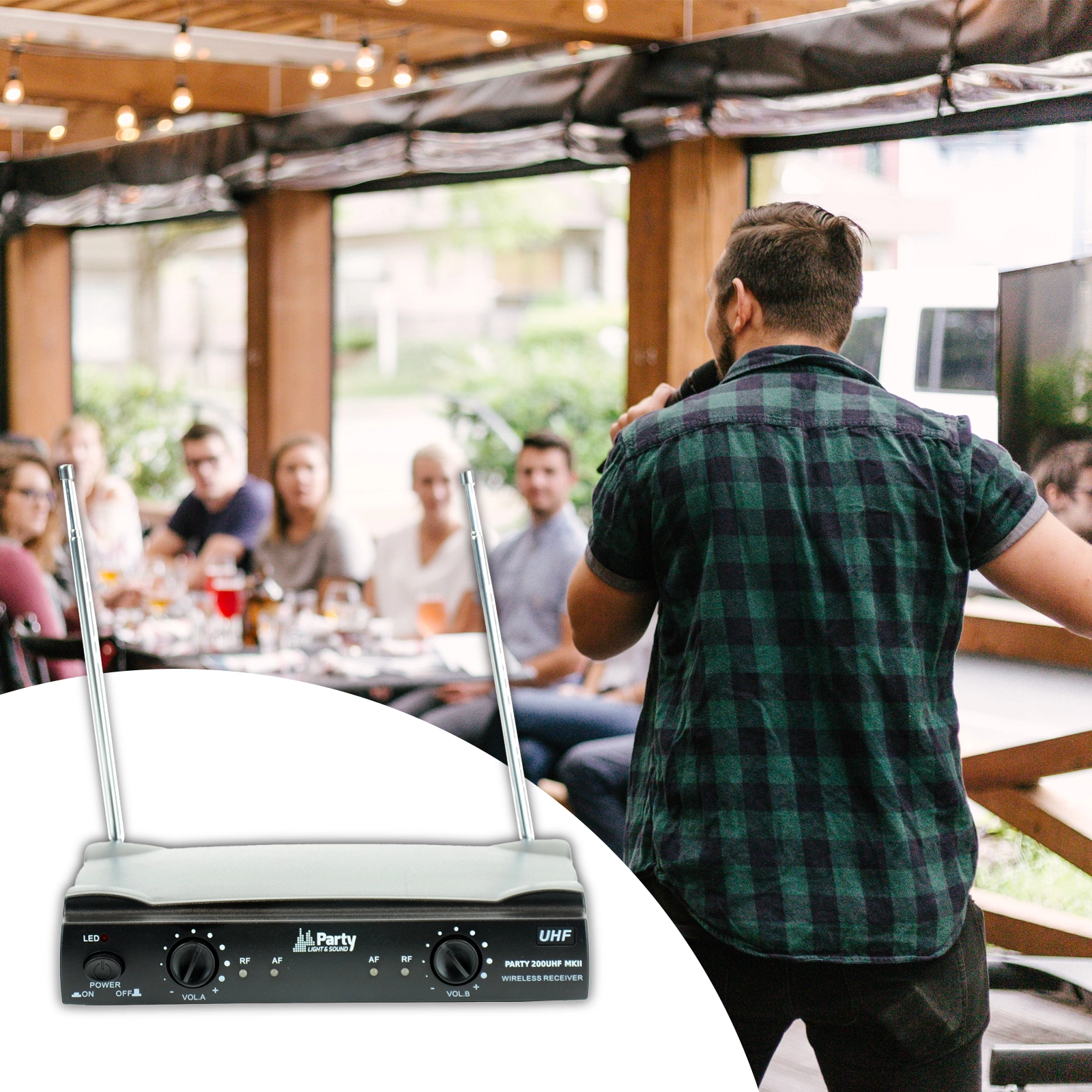 Party-200UHF działa na dwóch częstotliwościach roboczych, 863,2 i 864,2 MHz, podczas gdy technologia UHF nowej generacji zapewnia większy zasięg transmisji i lepszą stabilność, co oznacza, że nie musisz się martwić o przypadkowe rozłączenie z systemem. Dwa ręczne mikrofony dostarczane z systemem zawierają zintegrowane nadajniki i są zasilane bateryjnie dla Twojej wygody. Ten bezprzewodowy system mikrofonowy jest idealny dla śpiewaków, mówców publicznych, karaoke, prezentacji i konferencji.