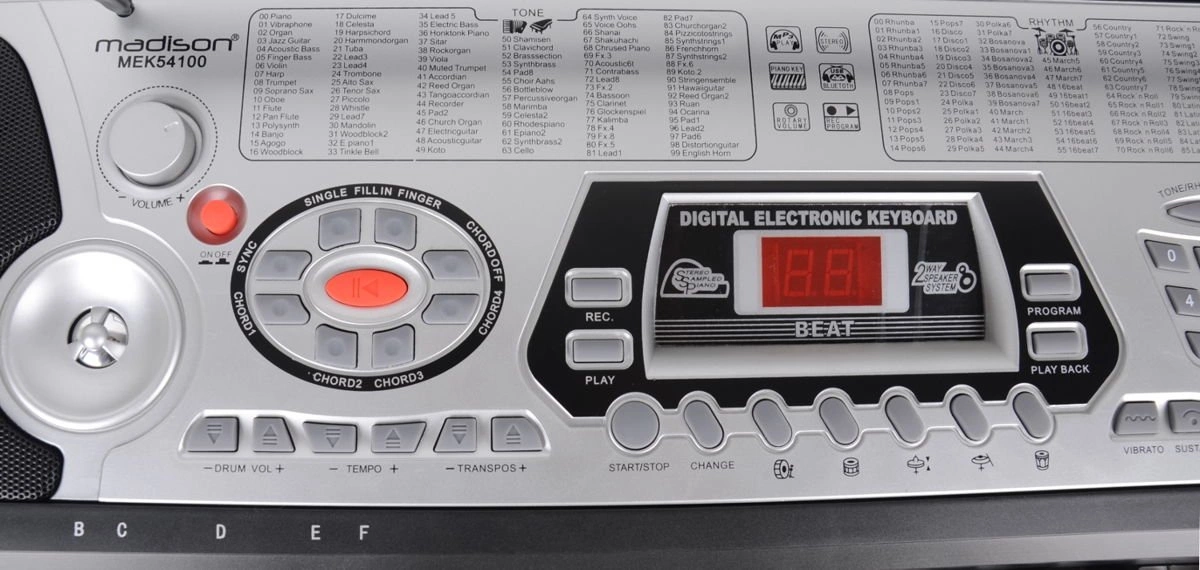 Keyboard MADISON MEK54100 został wyposażony w praktyczne rozwiązania, które ułatwiają naukę i zabawę: