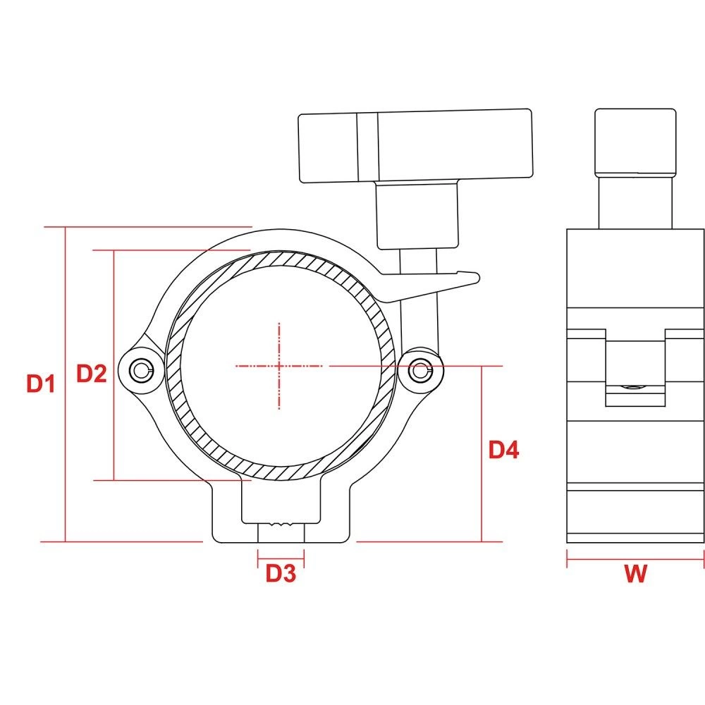 Wytrzymały, uniwersalny, kompaktowy, aluminiowy, wąski uchwyt do montażu w rurach i kratownicach. Wytrzymała konstrukcja aluminiowa.