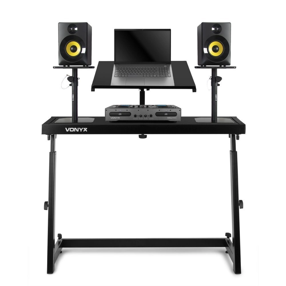 Dzięki pulpitowi DJ Vonyx do użytku mobilnego, będziesz mieć swój sprzęt uporządkowany i starannie gotowy do pracy w dowolnym miejscu w mgnieniu oka. Stojak ma pełną regulację wysokości, a także jest wyposażony w regulowaną, pochylaną, doczepianą platformę (pulpit). To mobilne DJ'skie stanowisko jest idealnym miejscem na miksery, gramofony, kontrolery, laptop i wiele innych sprzętów. Stojak jest skonstruowany z mocnego materiału, oraz łatwy w montażu. Mebel może unieść ciężar do 17 kg, co wystarcza na mikser i różne urządzenia odtwarzające. Całość jest bardzo stabilna, mocna i stanowi doskonały element ekwipunku każdego, mobilnego DJ'a.