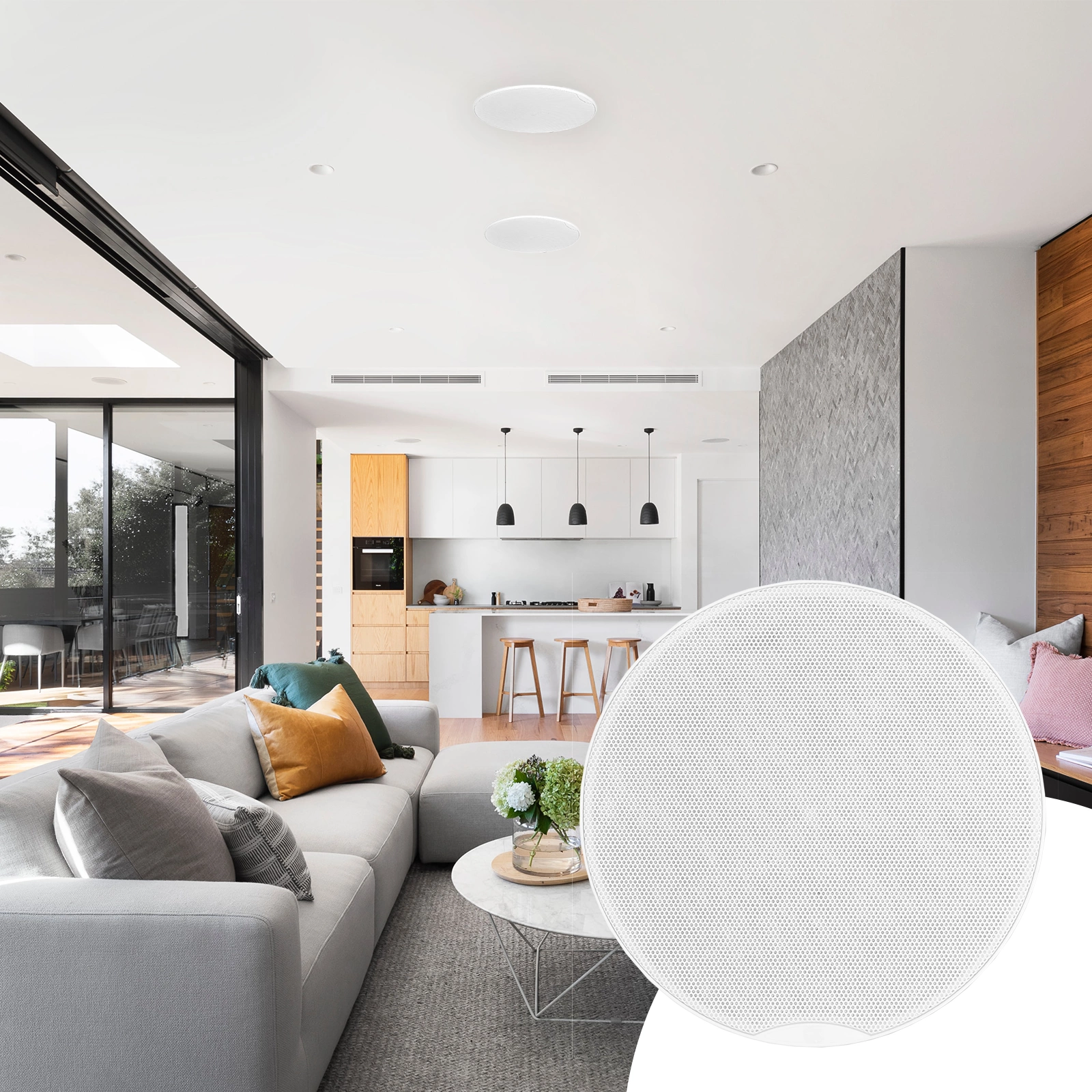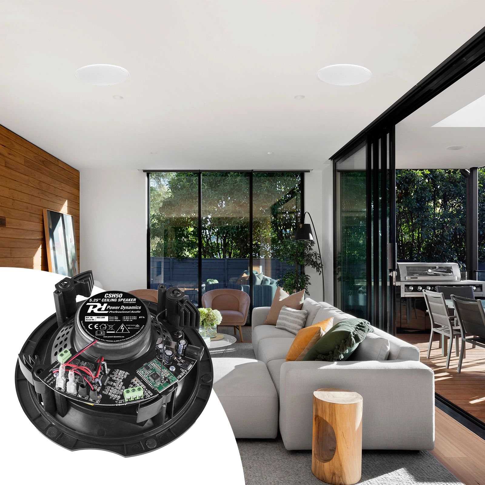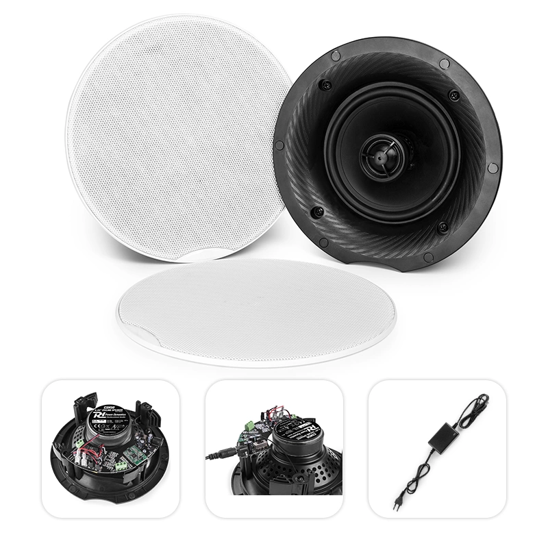 CSH50 to zestaw 2 wysokiej jakości głośników sufitowych; 1 z wbudowanym wzmacniaczem i 1 pasywnym, które można podłączyć do aktywnego głośnika. Te 2-drożne głośniki są idealne do domu, biura, kuchni, przedpokoju lub gdziekolwiek indziej. Można je łatwo zamontować w ścianie lub w suficie i połączyć z Bluetooth, aby uzyskać łączność ze smartfonem, tabletem lub komputerem. Bezramowa konstrukcja i magnetyczna kratka ułatwiają instalację! Po prostu zainstaluj, podłącz i słuchaj.