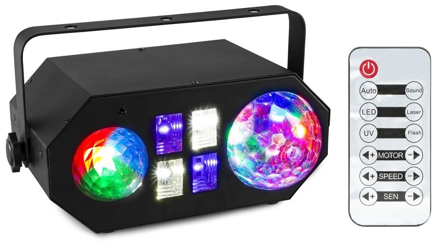 Efekt świetlny BeamZ LEDWAVE 4 w 1 LED, gwarantuje przyjemny wieczór. Efekt świetlny LEDWAVE oferuje, aż 4 efekty świetlne w jednym urządzeniu, a tym samym zapewnia zabawny, kolorowy i zróżnicowany pokaz świetlny z różnymi efektami. Efekt świetlny jest wyposażony w poręczny pilot do łatwej obsługi. To sprawia, że BeamZ LEDWAVE, idealnie nadaje się do użytku w domu, na przyjęciu, lub jako efekt świetlny dla początkującego DJ-a. Efekt świetlny 4 w 1 BeamZ LEDWAVE ma 4 różne efekty świetlne, które są wbudowane w 1 obudowę.