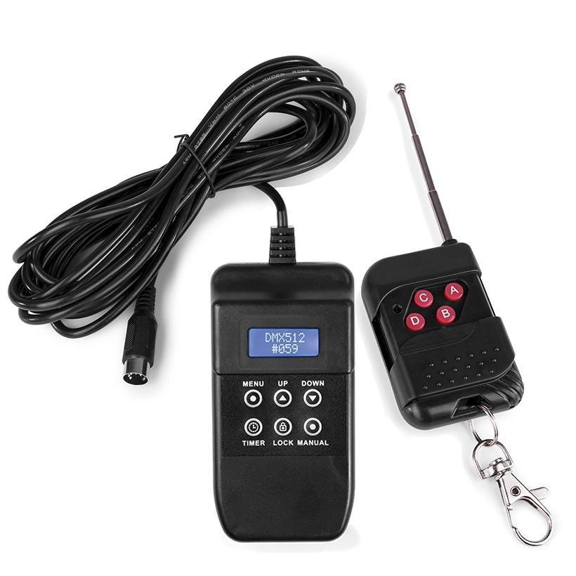 Przewodowy pilot z wyświetlaczem LED, za pomocą którego wybierzesz jedną z przydatnych funkcji, pozwalających na kontrolę gęstości dymu, czasu trwania efektu oraz odstępów w czasie pomiędzy przerwami.